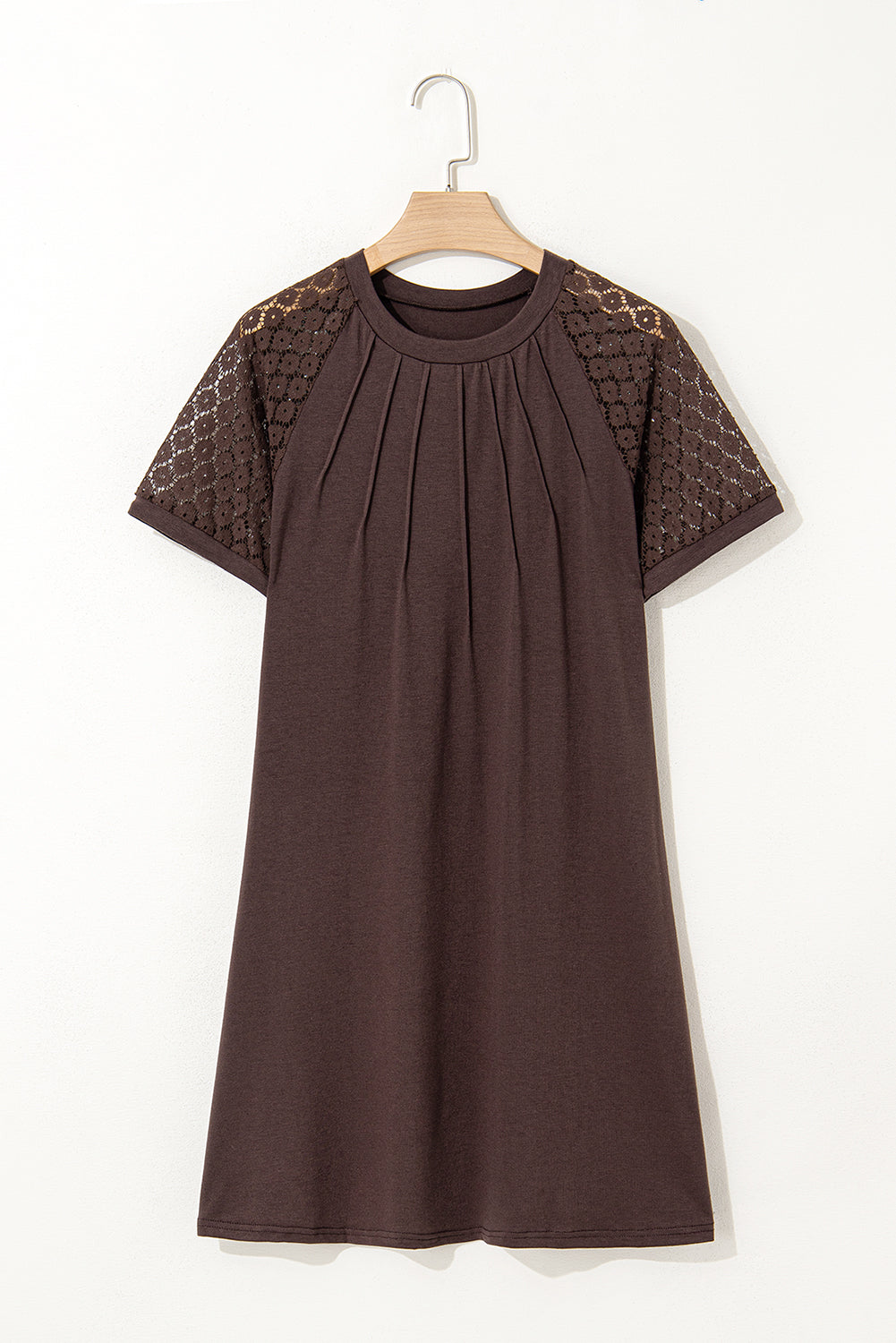 Black Contrast Lace Raglan Sleeve Pleated Detail Shift Dress