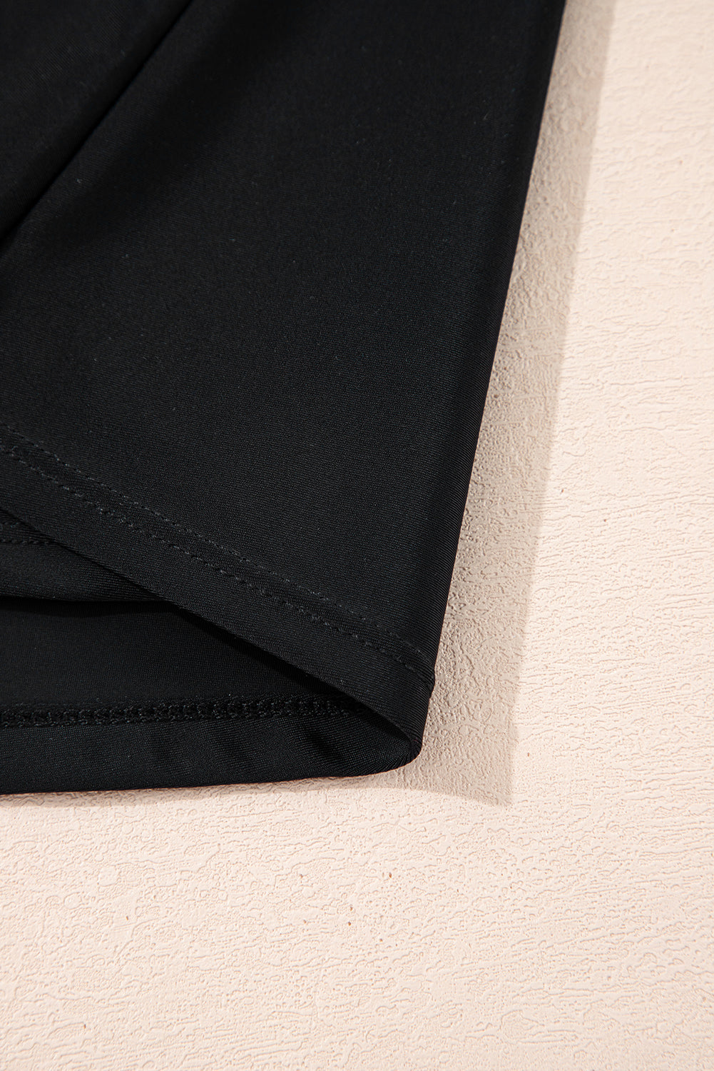 Black Crossed V Neck Adjustable Strap Babydoll Tankini Top
