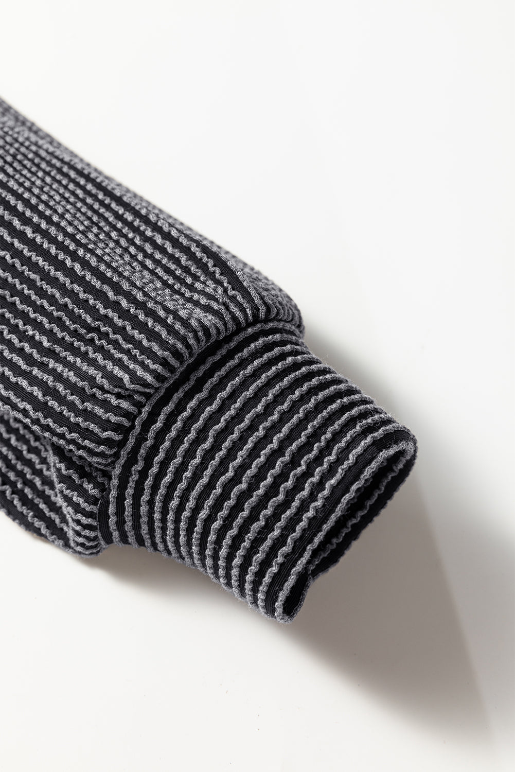 Black Halloween Rhinestone Pumpkin Face Contrast Ribbed Long Sleeve Patchwork Top