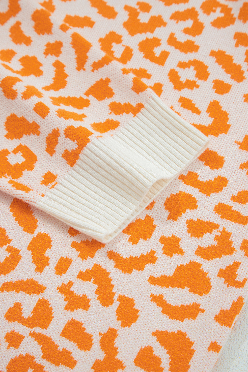 Black Leopard Drop Shoulder Chunky Knitted Cardigan Sweater