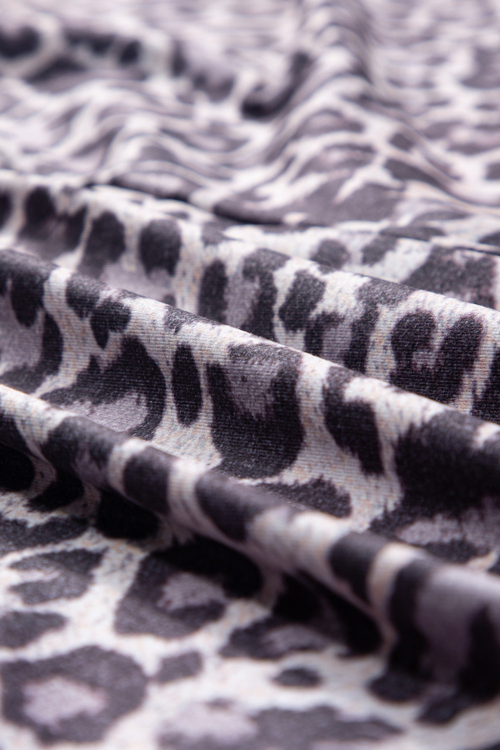 Black Long Sleeve Fitted Bodice Leopard Maxi Dress