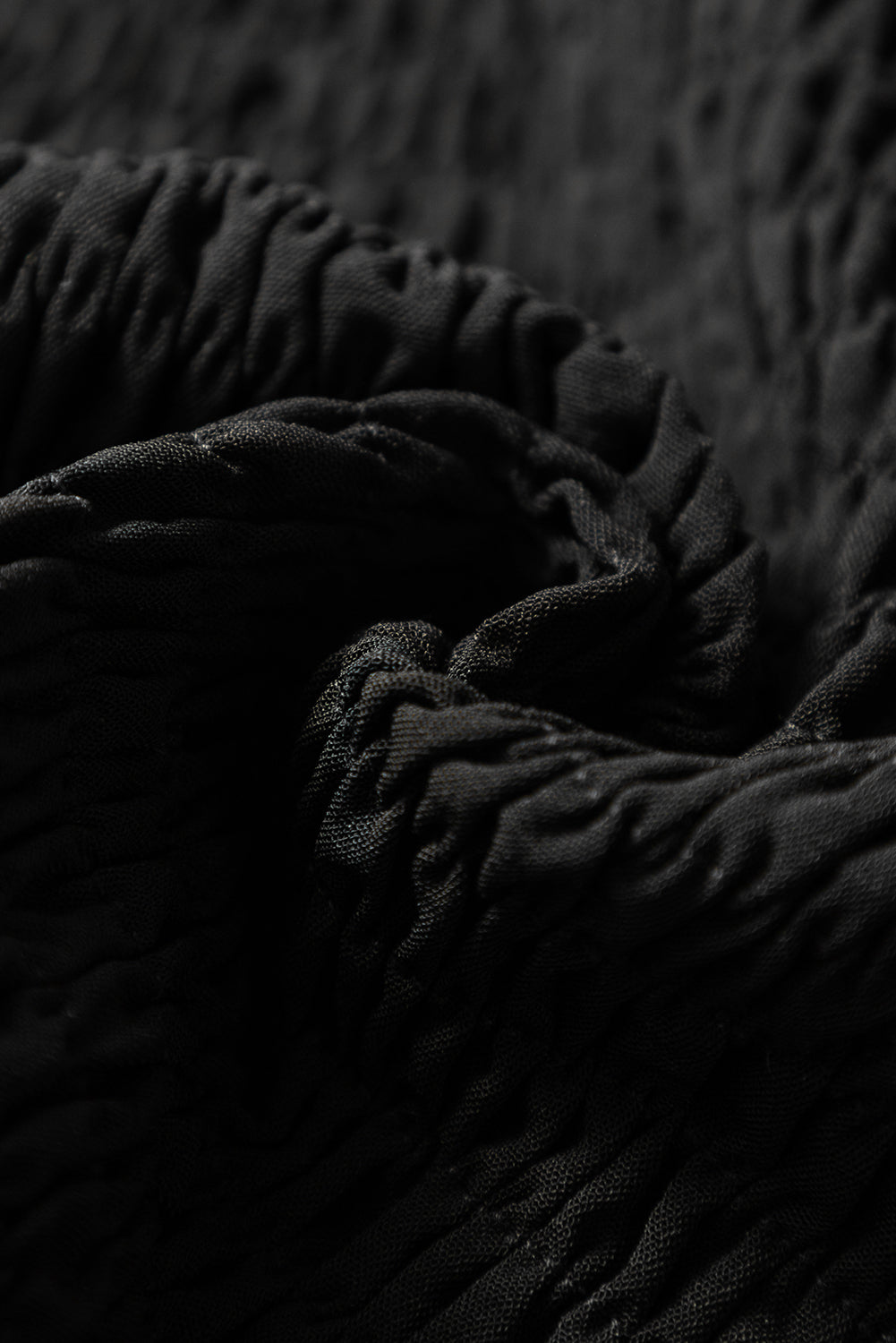 Black Ruffle Short Sleeve Shirred Peplum Top
