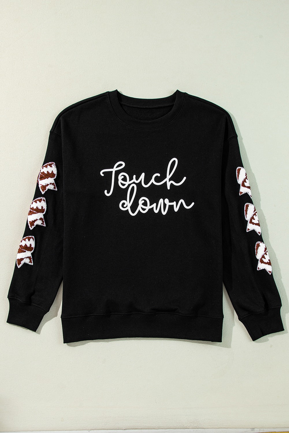 Black touch down Graphic Rugby Football Bowknot Patched Sleeve Sweatshirt