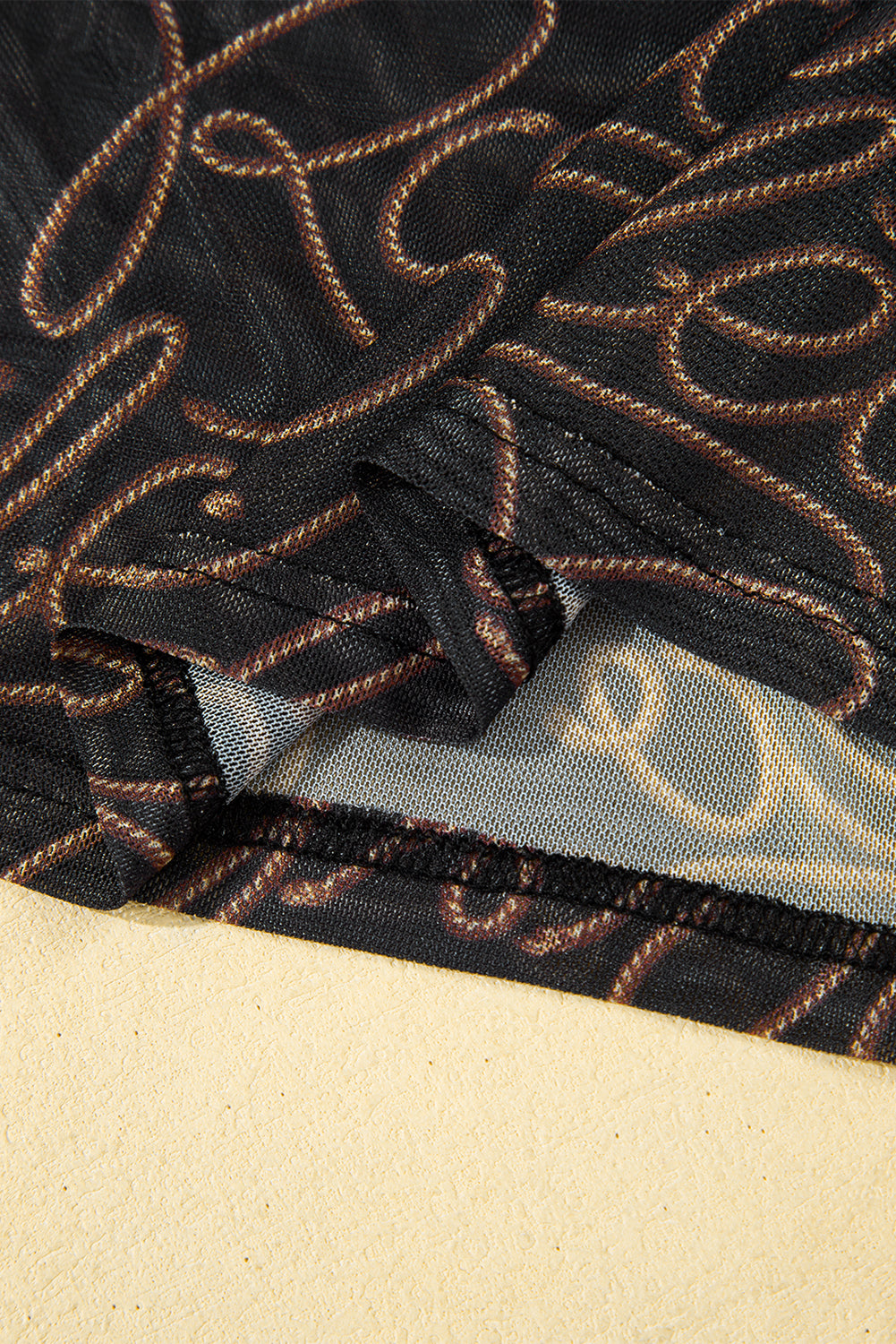 Black Western Rodeo Printed Mock Neck Long Sleeve Mesh Top