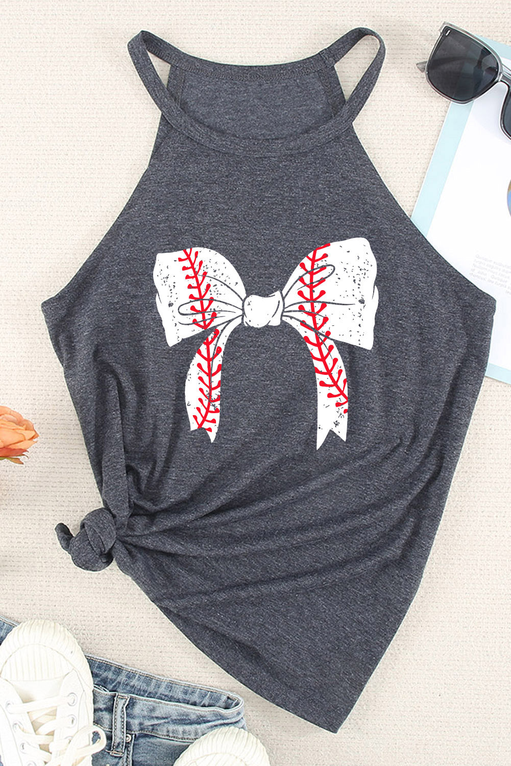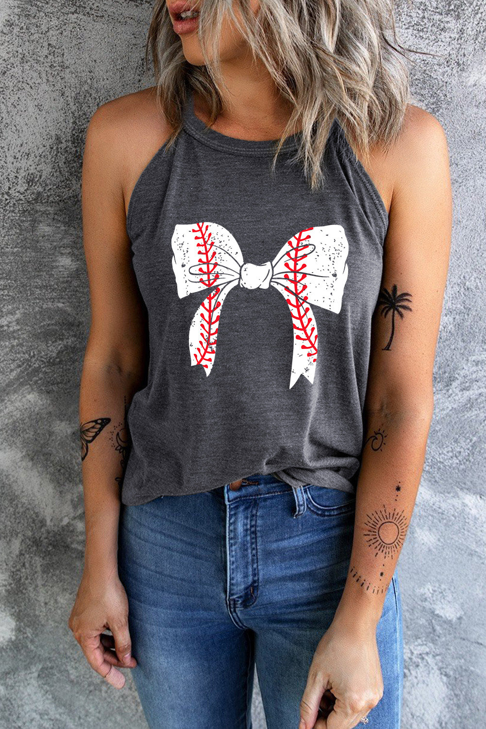 Blue Baseball Bow Knot Print Slim Fit Crewneck Tank Top