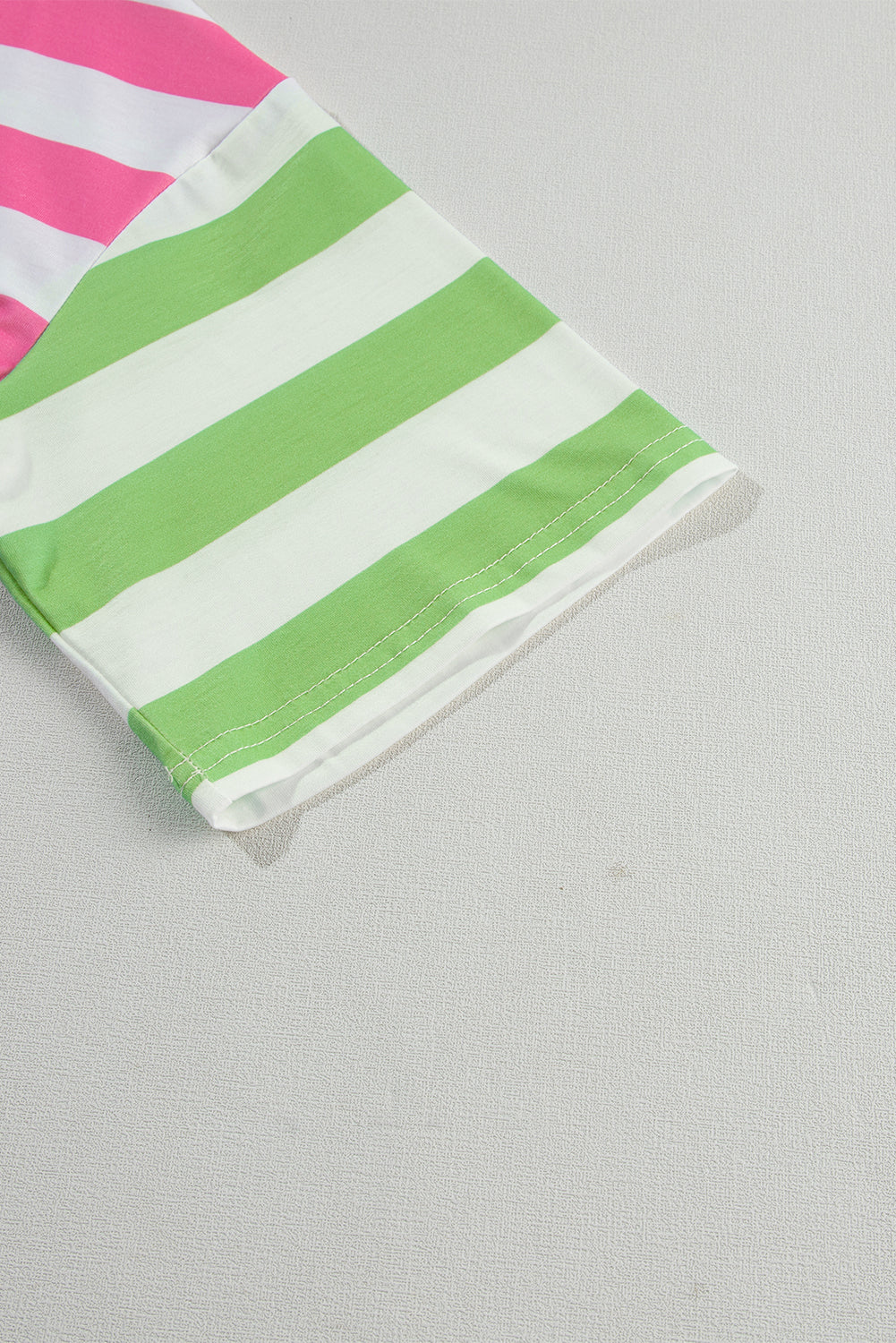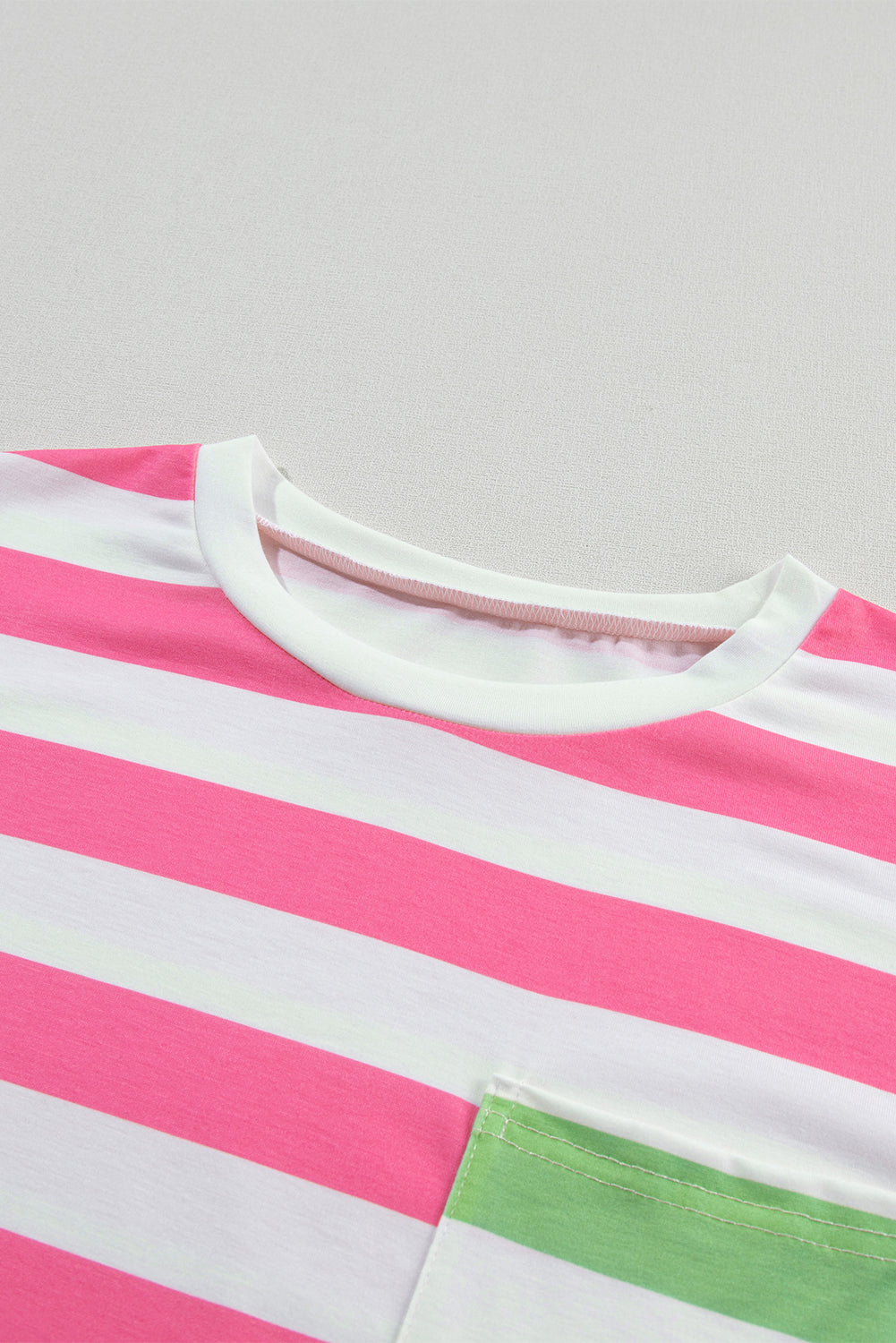 Stripe Contrast Patch Pocket Drop Sleeve T Shirt
