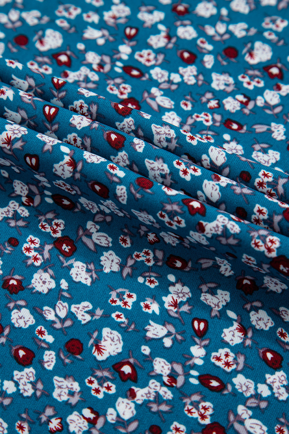 Blue Vintage Boho Floral Smocked Short Puff Sleeve Wide Leg Jumpsuit