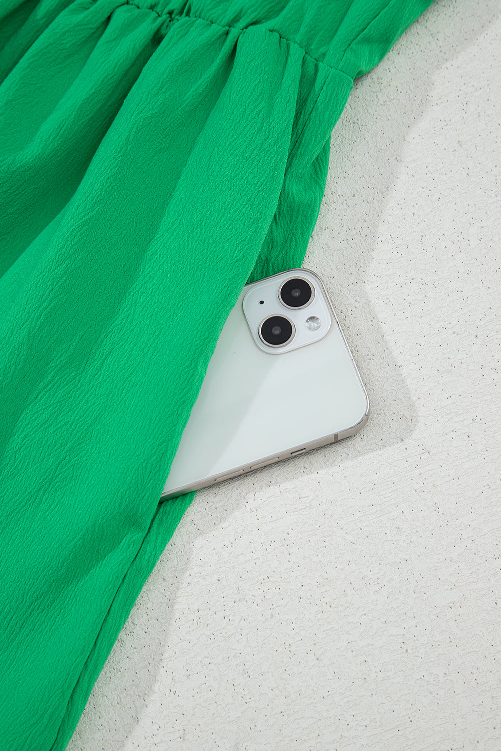 Bright Green Split V Neck Elastic Waist Ruffled Dress