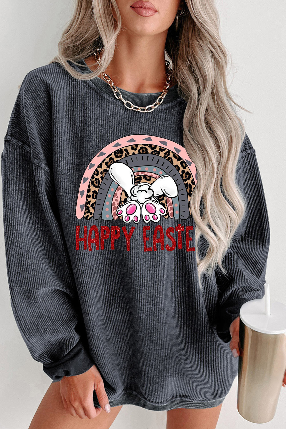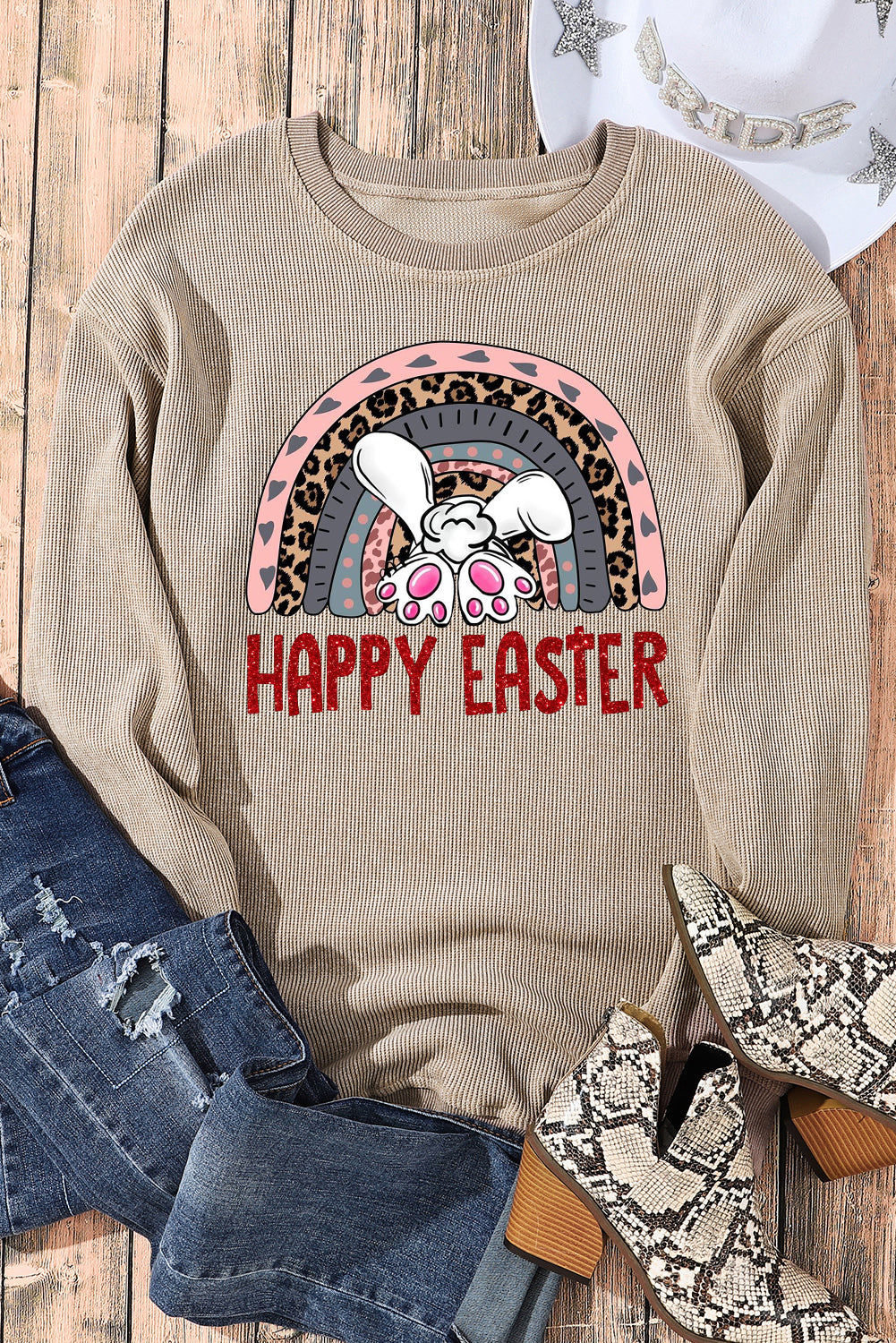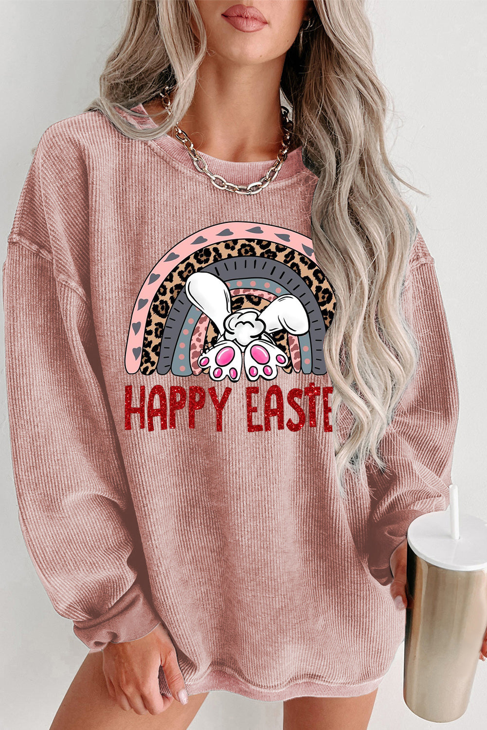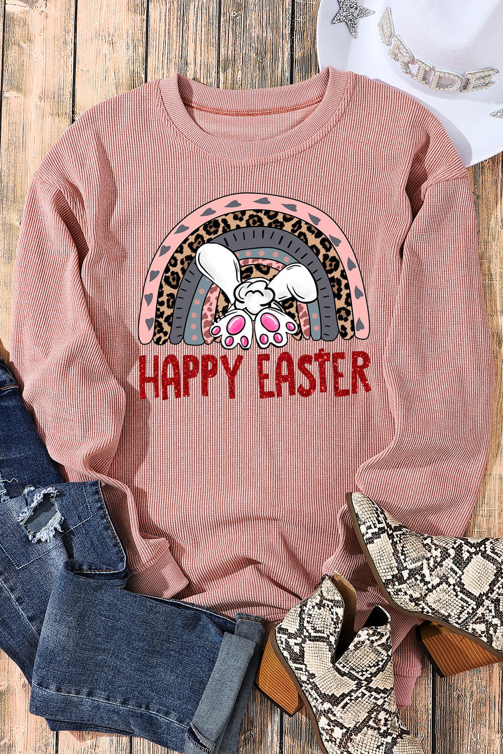 Bunny Vibes Ribbed Knit Round Neck Pullover Sweatshirt