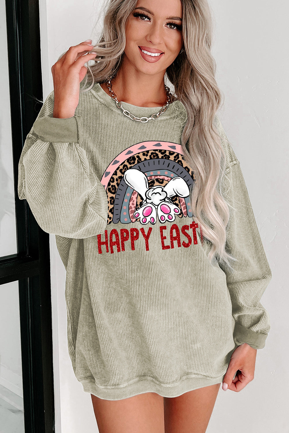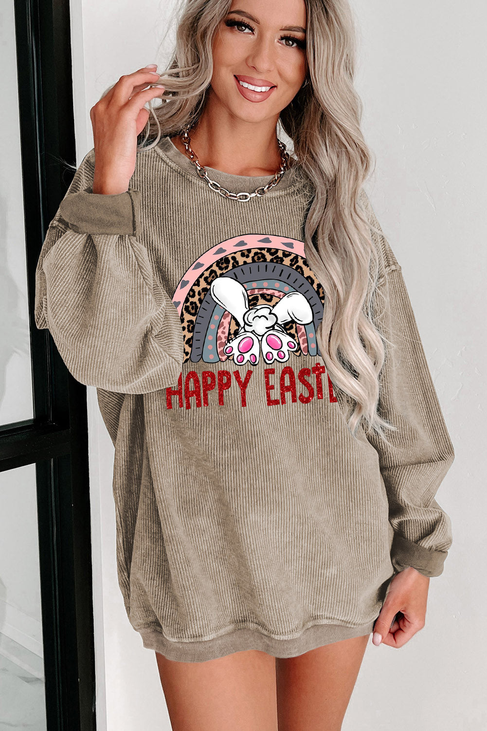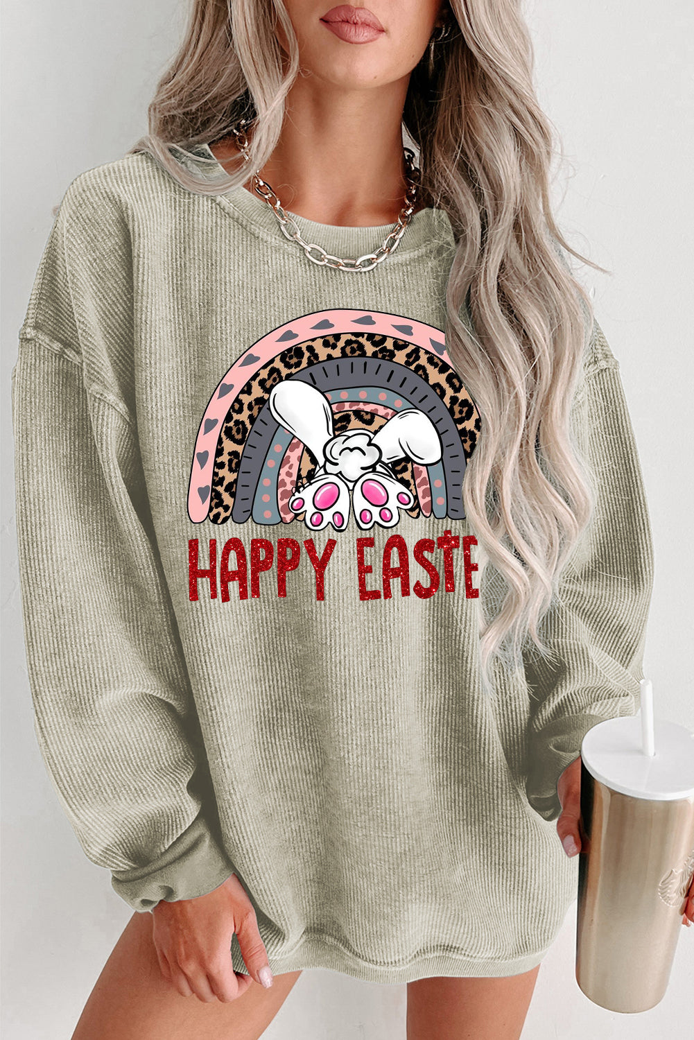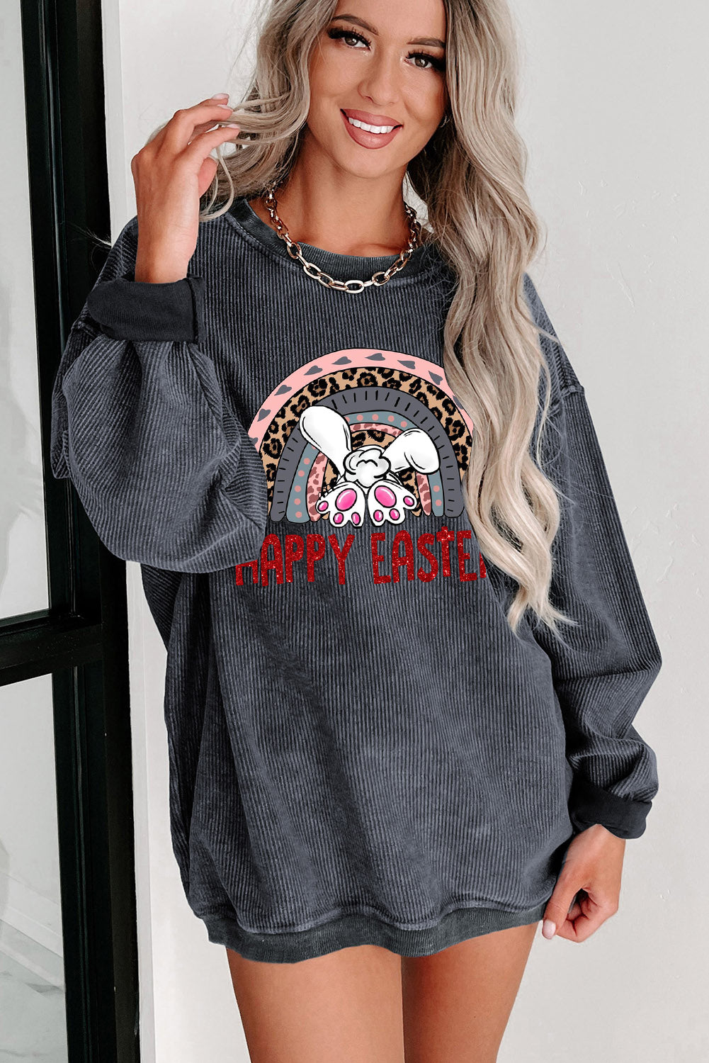 Bunny Vibes Ribbed Knit Round Neck Pullover Sweatshirt