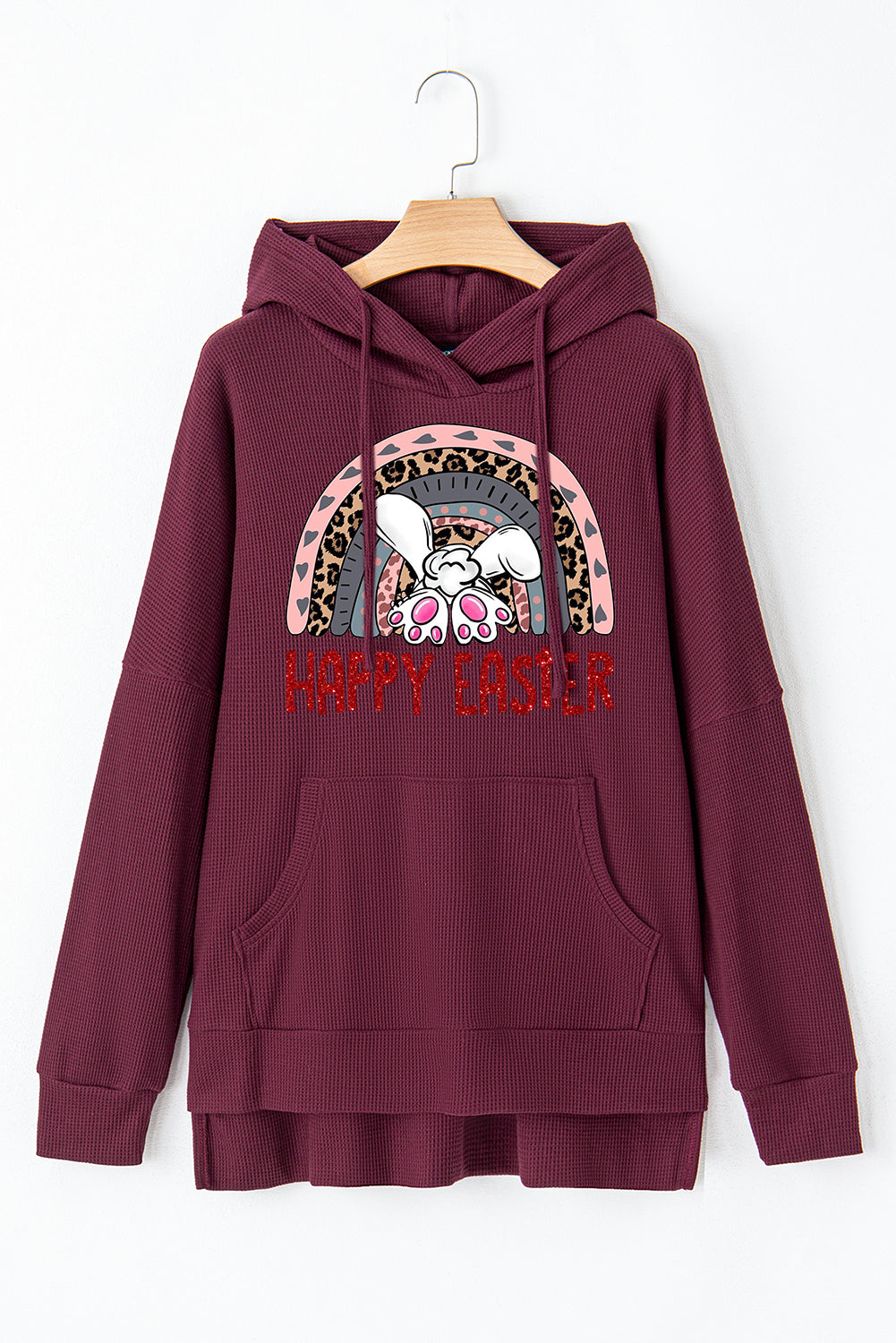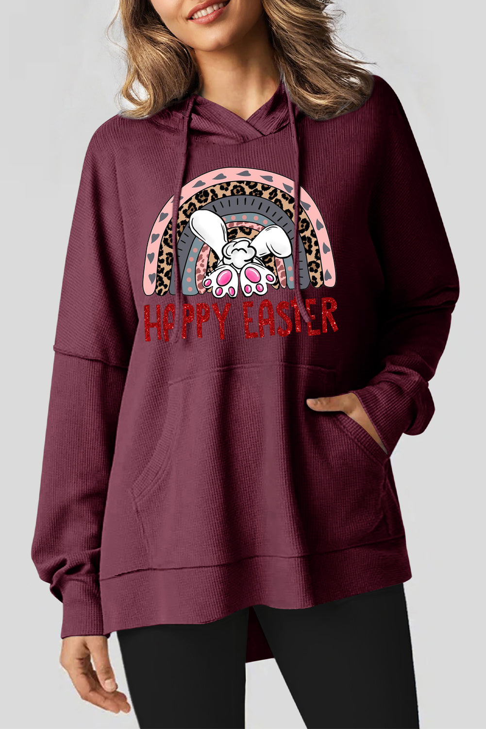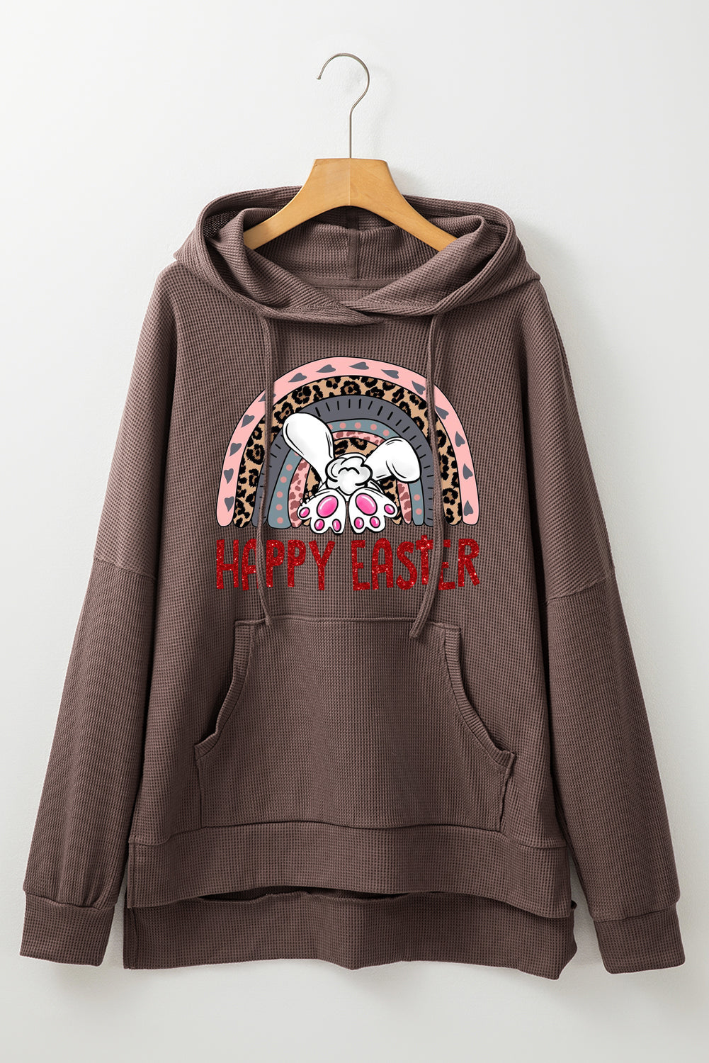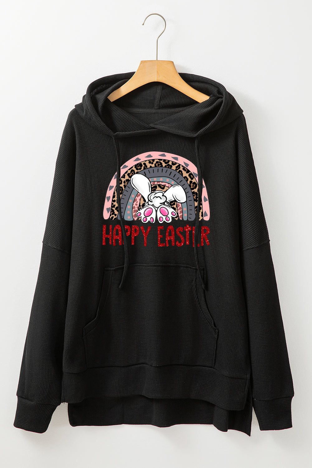 Bunny Vibes Waffle Knit Fleece Lined High Low Oversized Hoodie