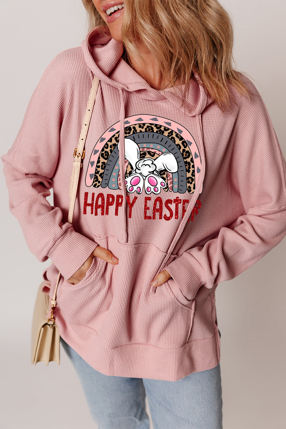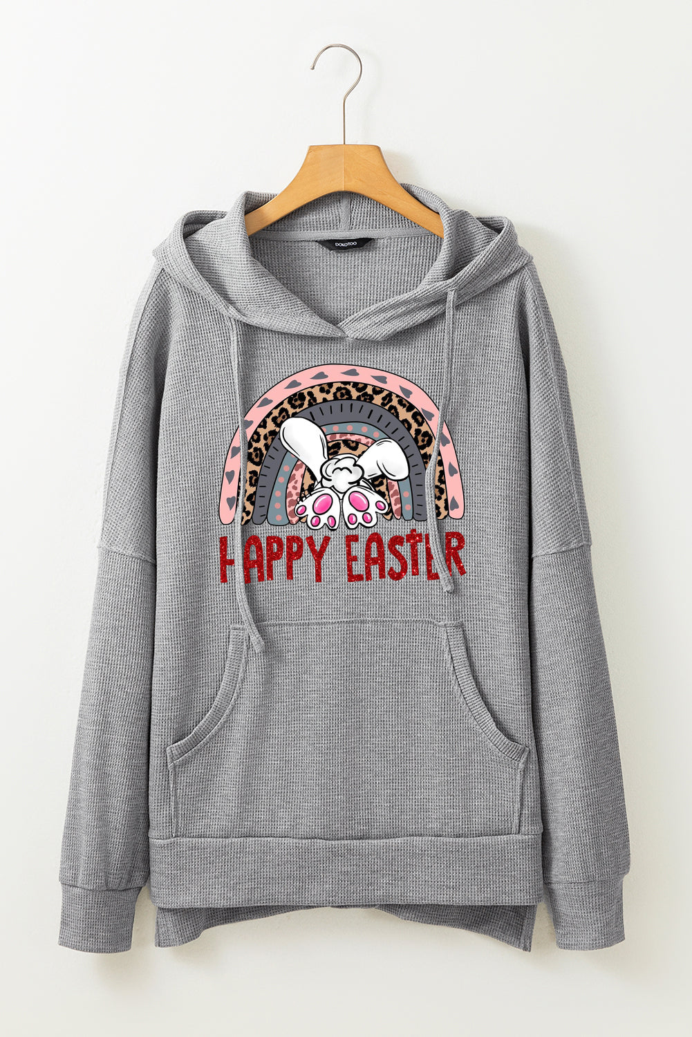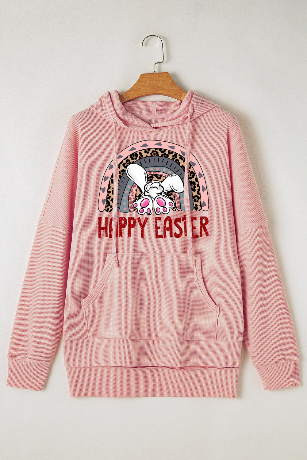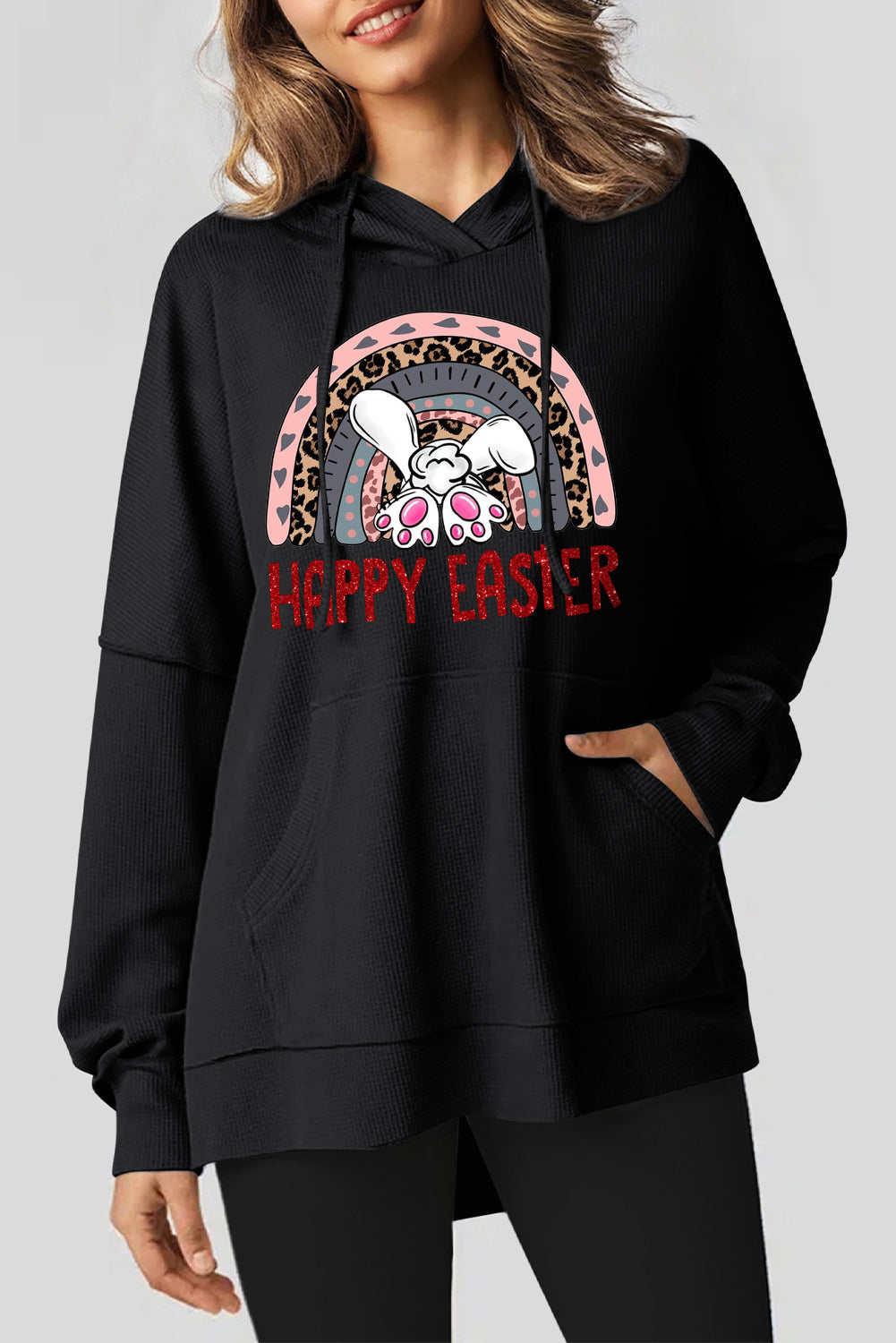 Bunny Vibes Waffle Knit Fleece Lined High Low Oversized Hoodie