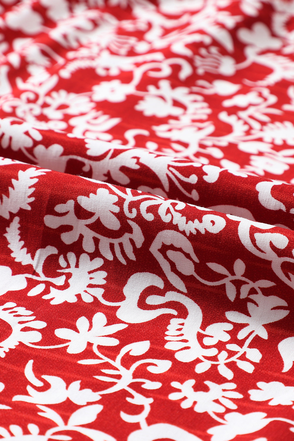 Burgundy Floral Print Smocked Tie Neck Blouse