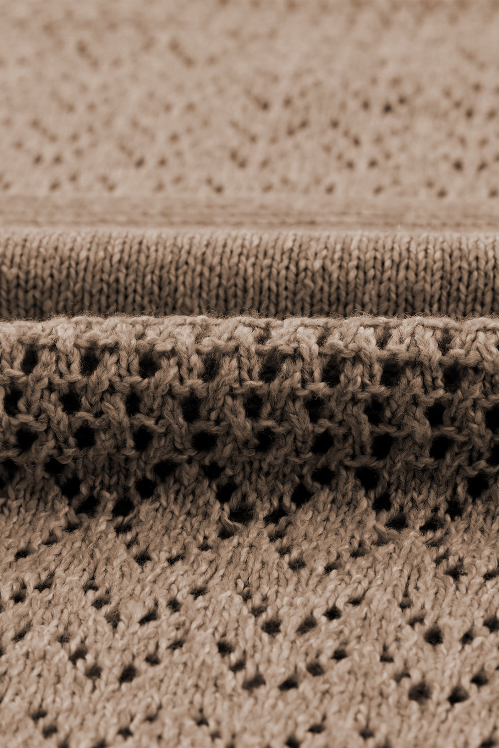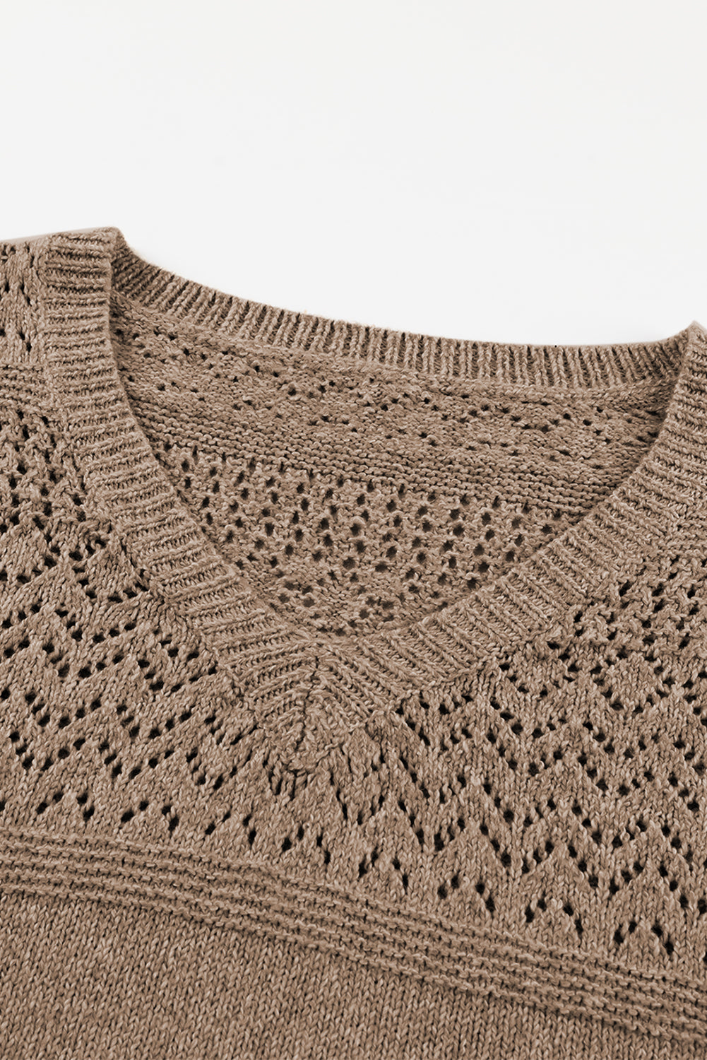Camel Eyelet Pattern Detail V Neck Drop Shoulder Sweater