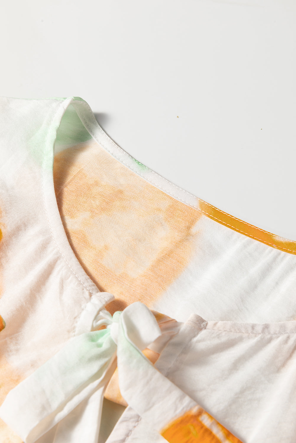 Carrot Abstract Floral Print Bow Tie Long Puff Sleeve Blouse