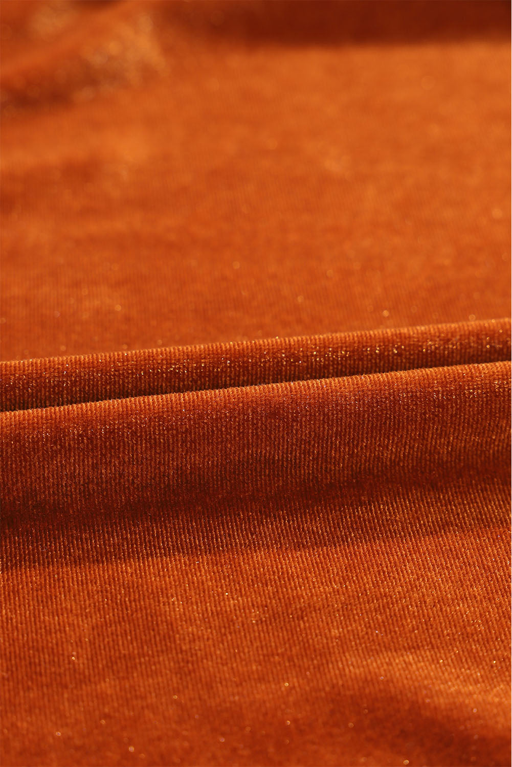 Chestnut 3/4 Sleeve Tunic Babydoll Velvet Shirt