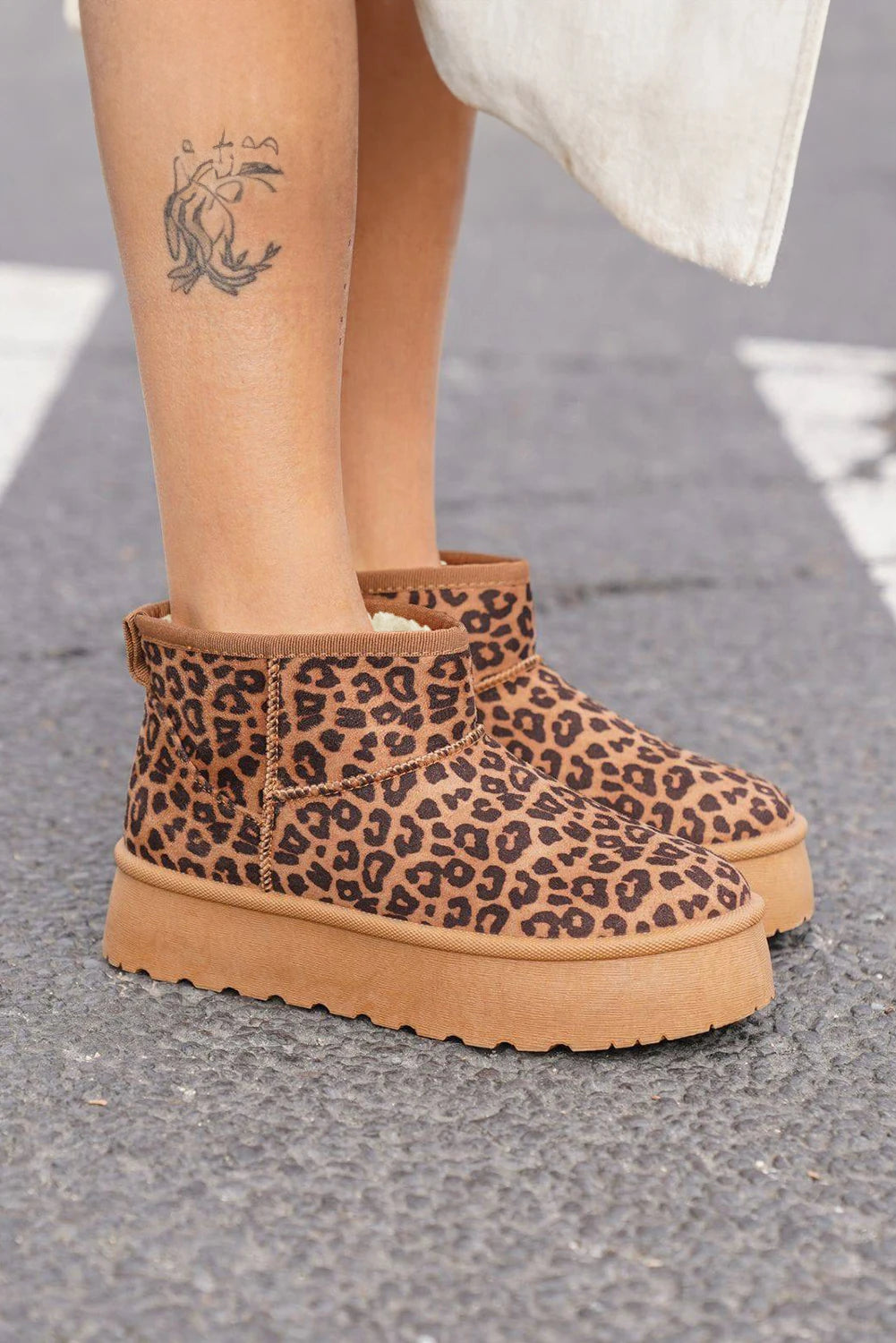 Chestnut Leopard Faux Suede Platform Snow Boots