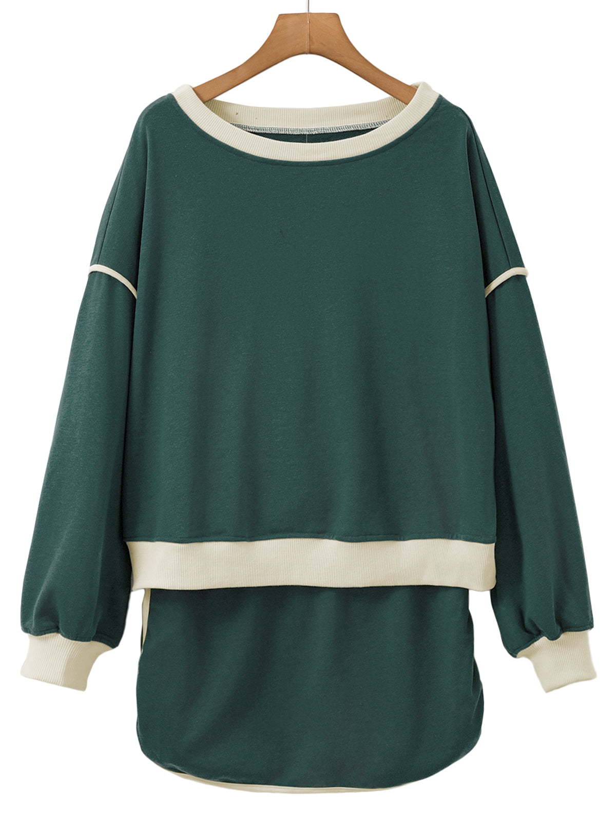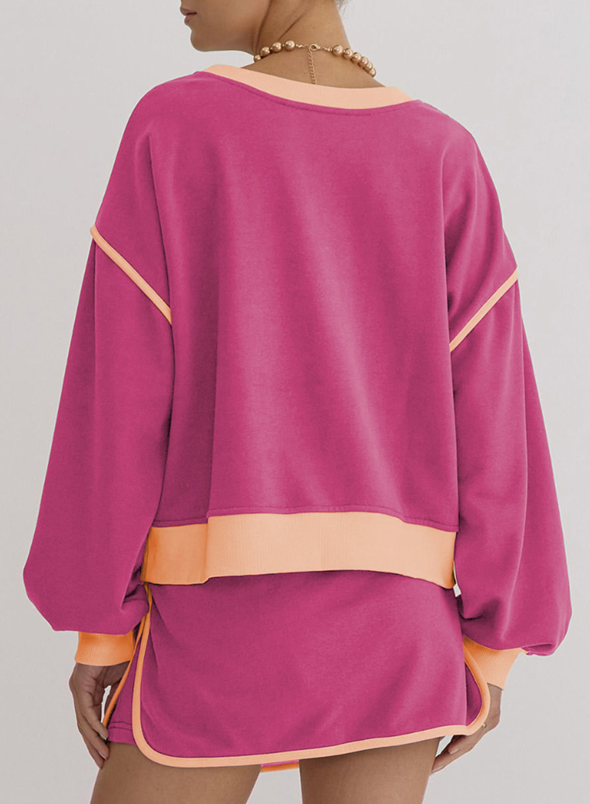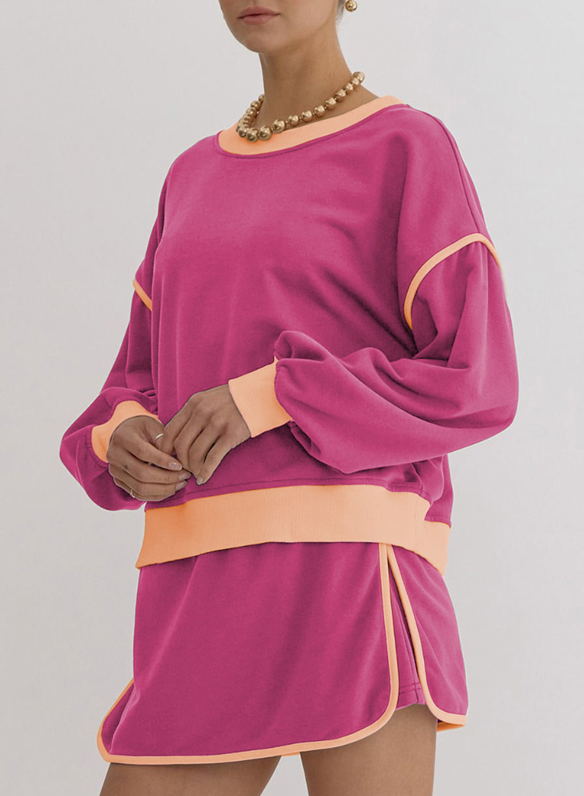Color Contrast Loose Pullover and Lace-up Waist Skort Set