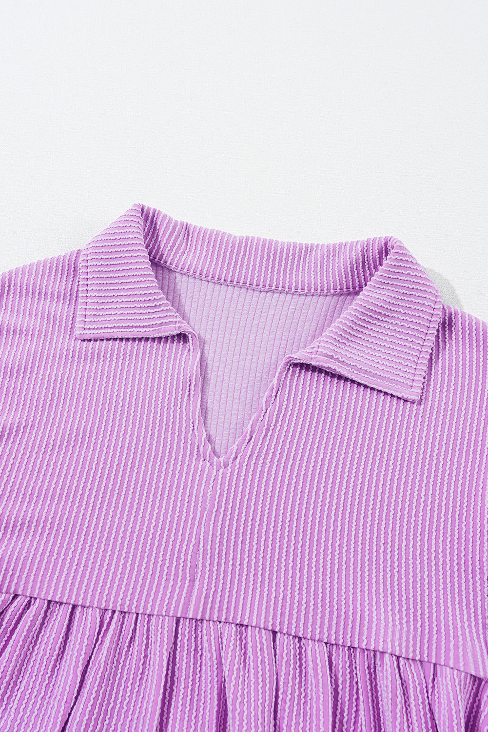 Corded Turn-down V Neck Bubble Sleeve Babydoll Blouse