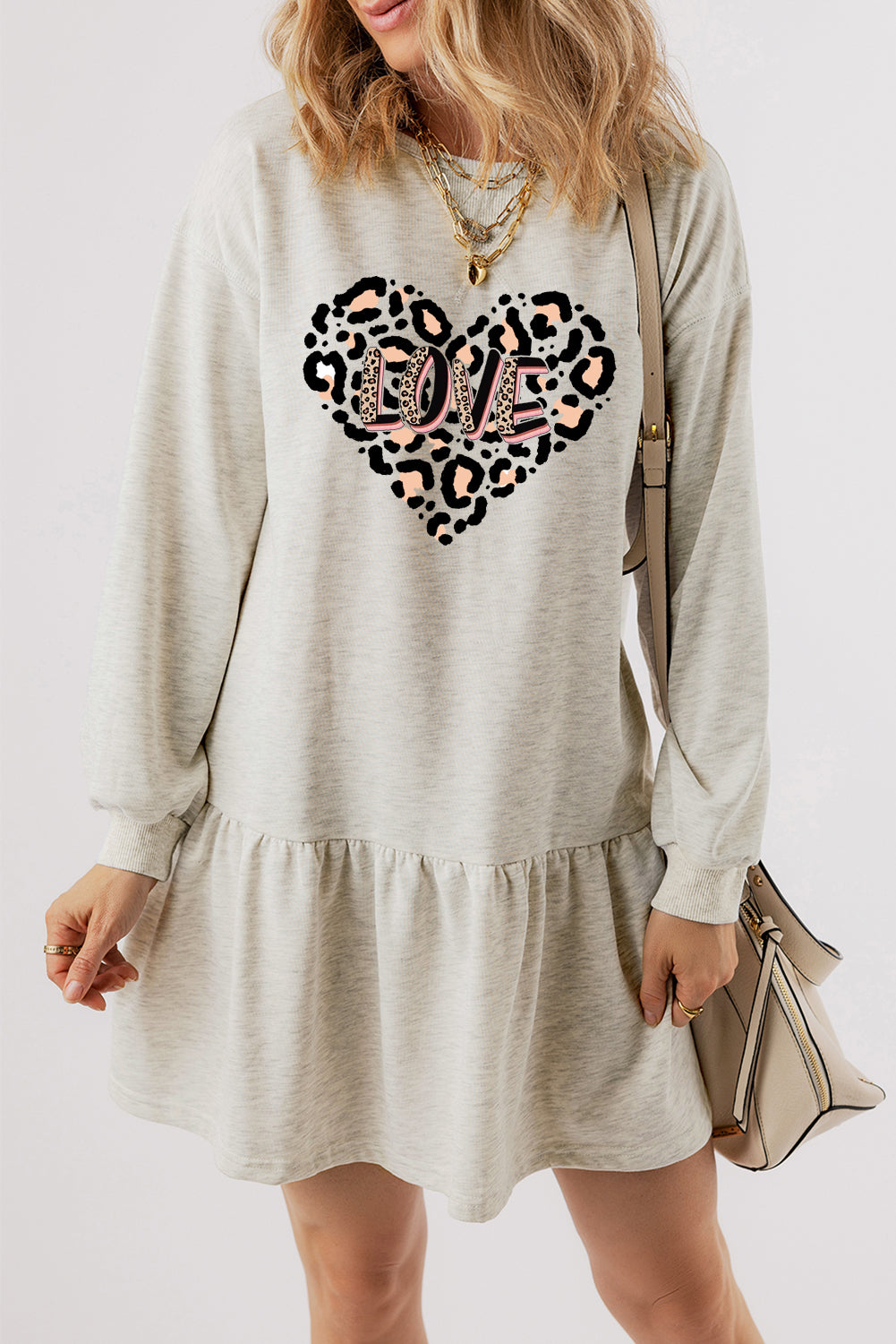 Cute Leopard Heart 'LOVE' Graphic Ruffle Hem Mini Dress