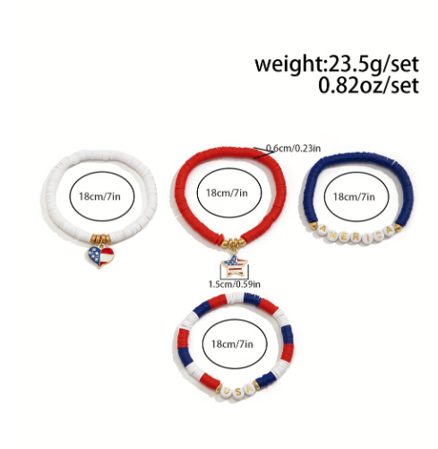 Dark Blue American Flag Pendant Letter Beaded Bracelet Set
