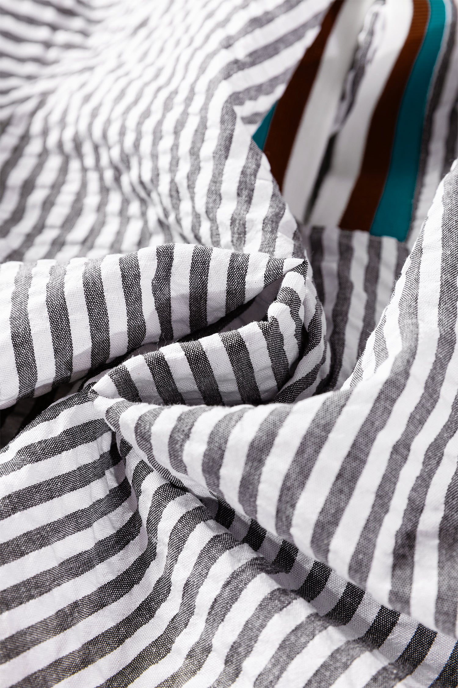 Dark Grey Striped Print Contrast Patchwork Detail Split Neck Blouse