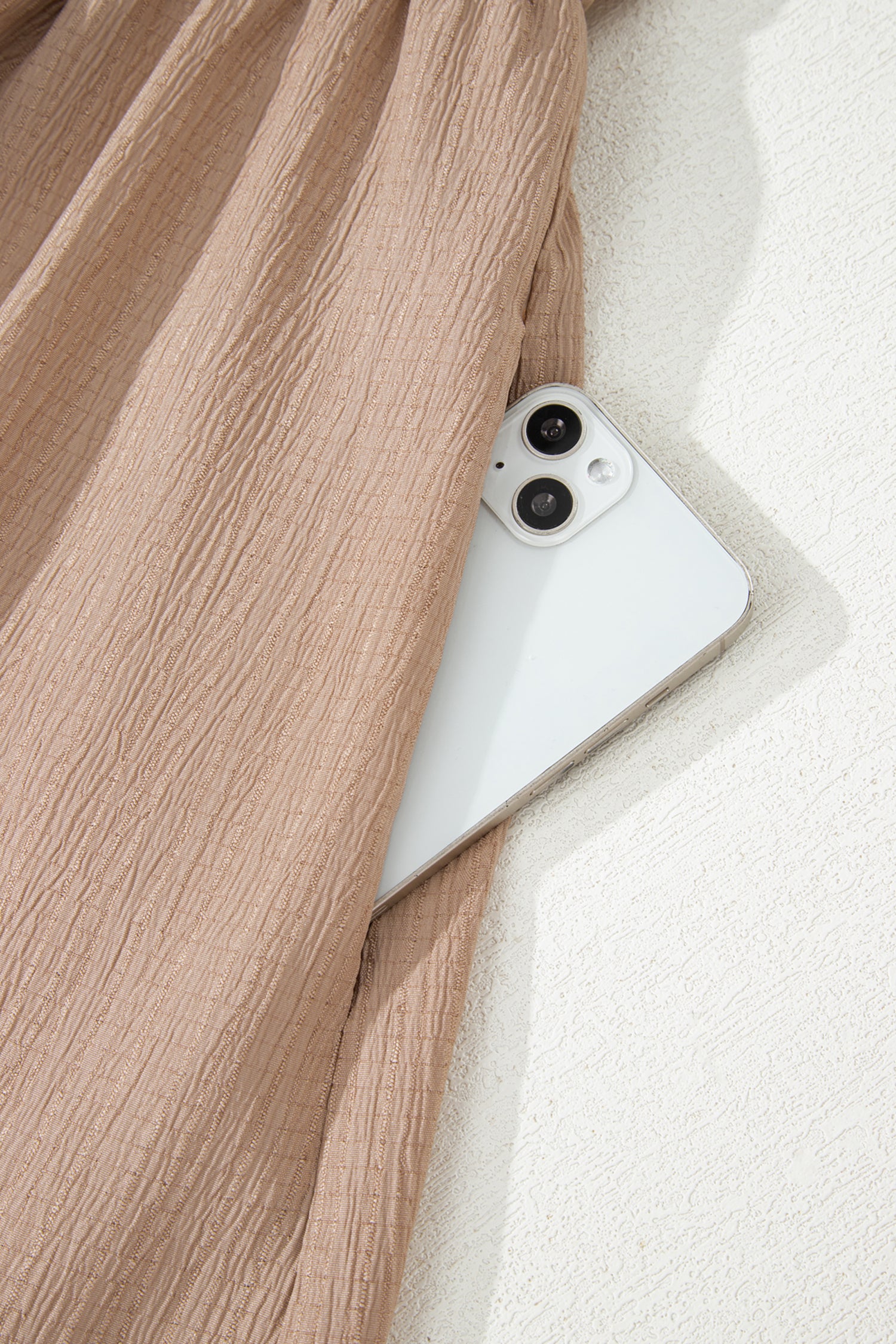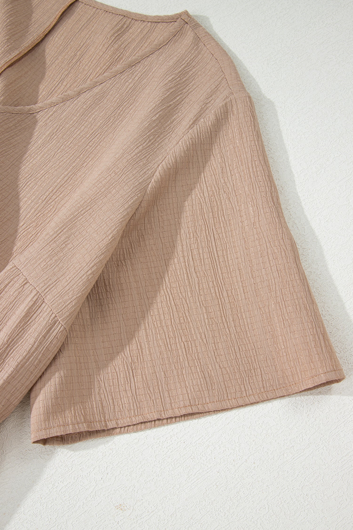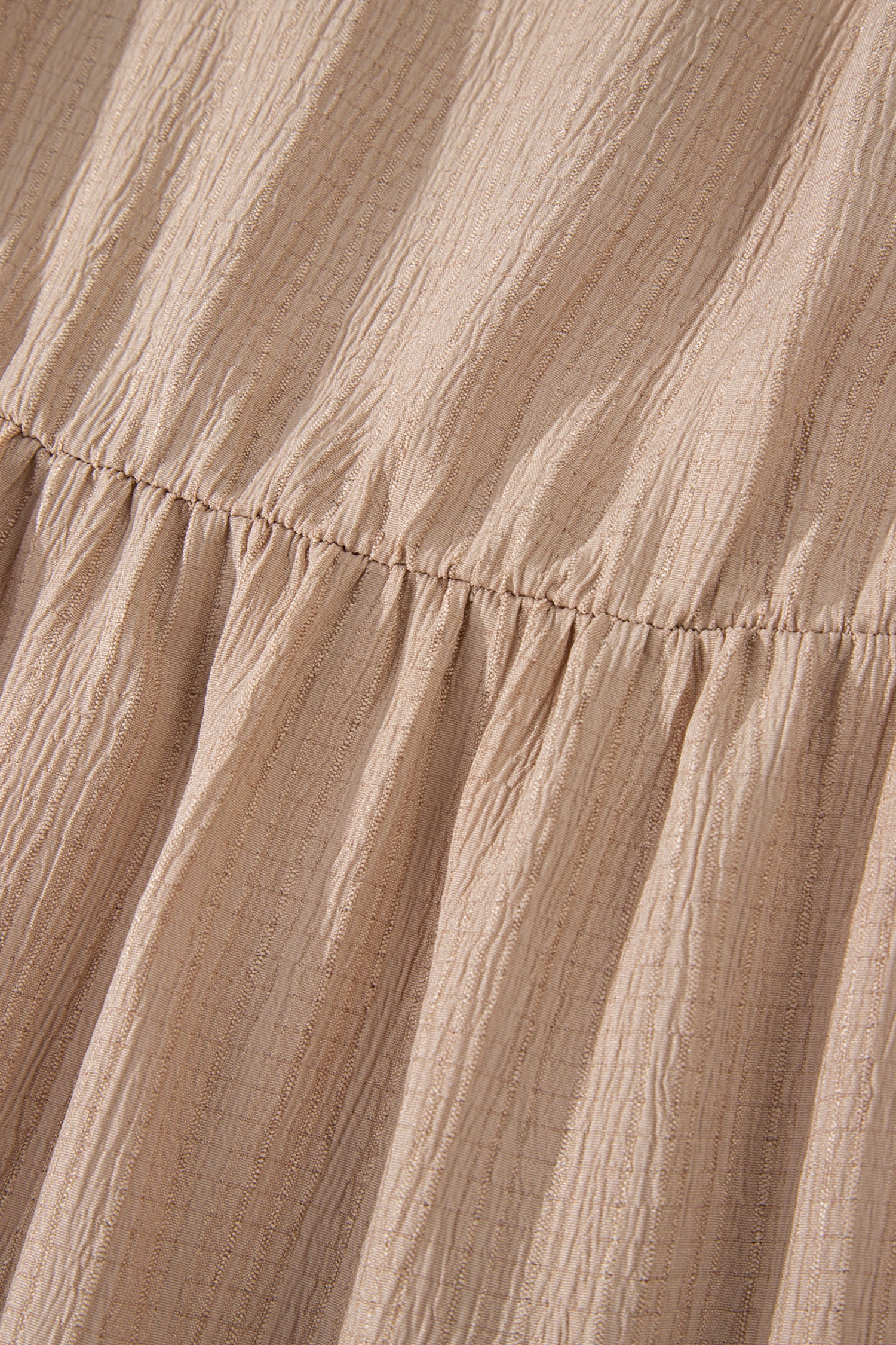 Dark Khaki Plus Size Textured Ruffled Short Sleeve Dress