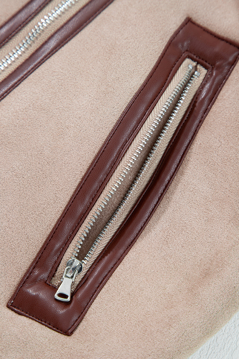 Dark Khaki Sherpa Lined Faux Suede Lapel Collar Vest