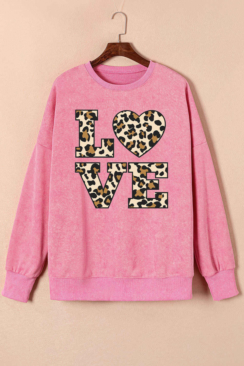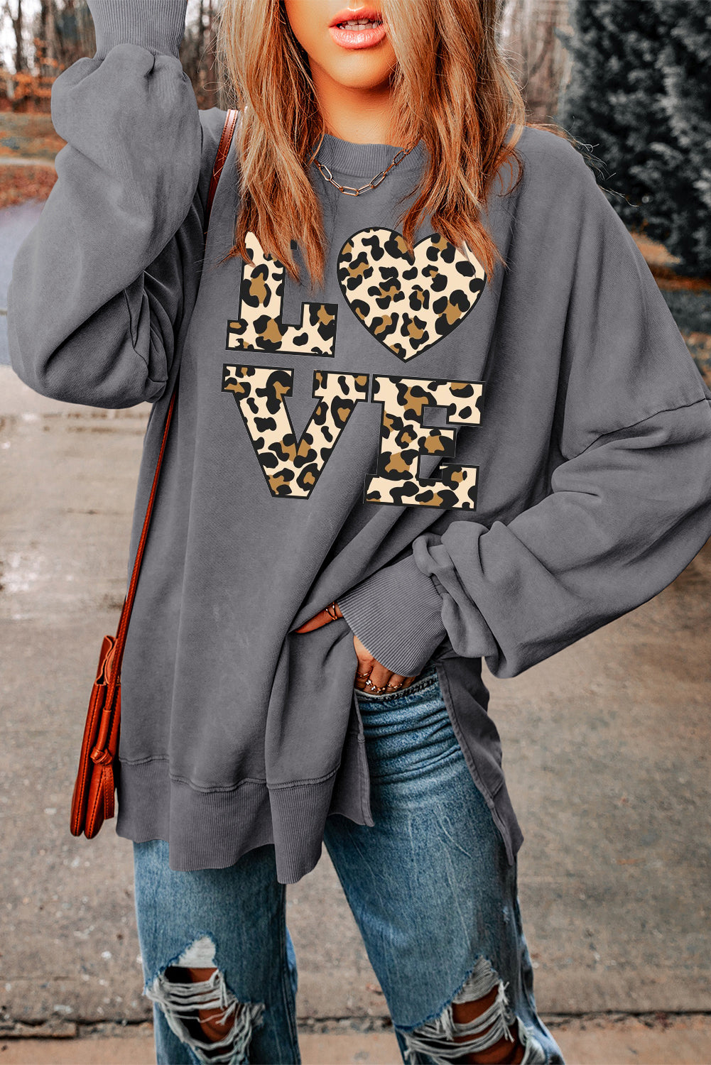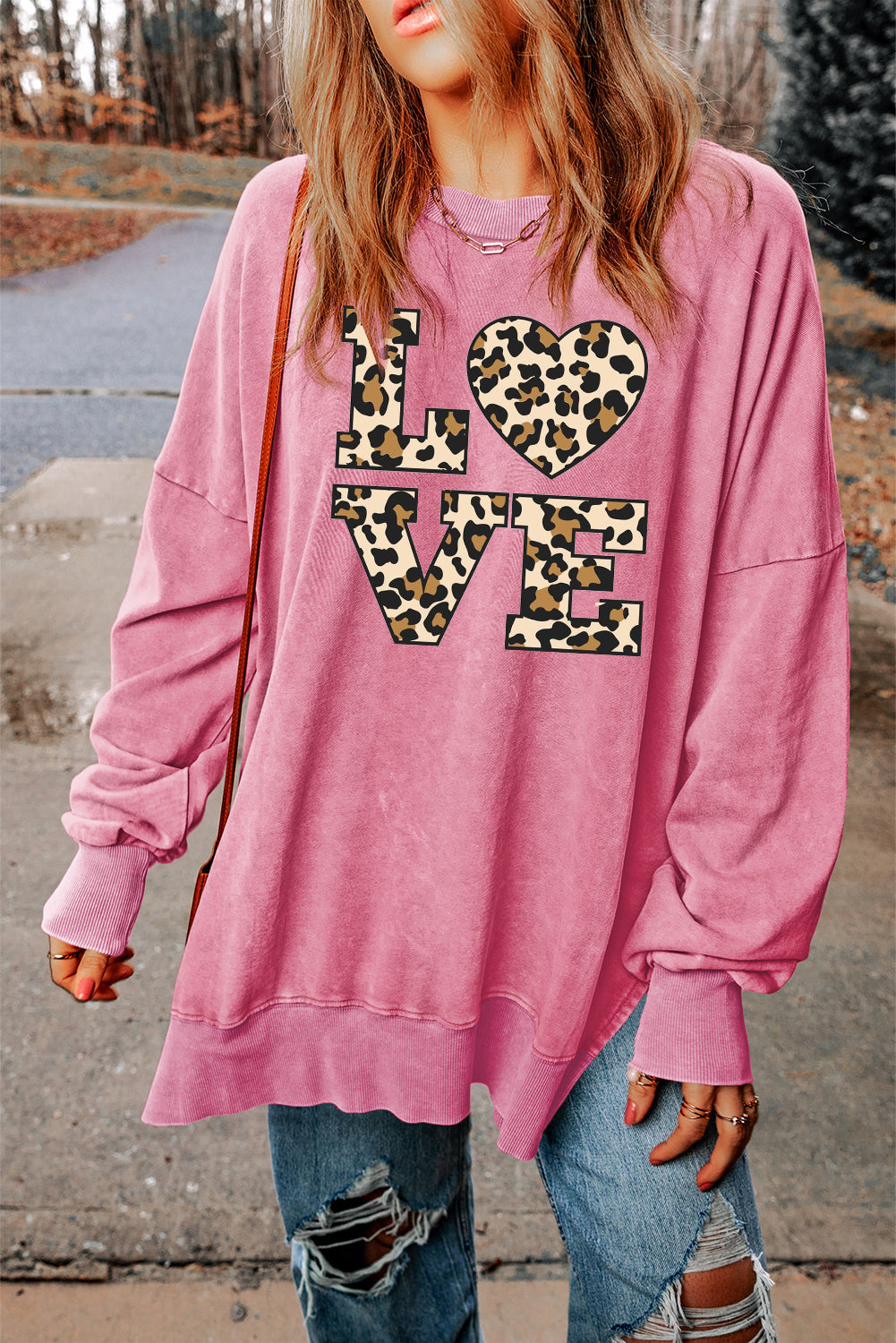 Date Night Leopard Print Heart Oversized Drop Shoulder Ribbed Sweatshirt