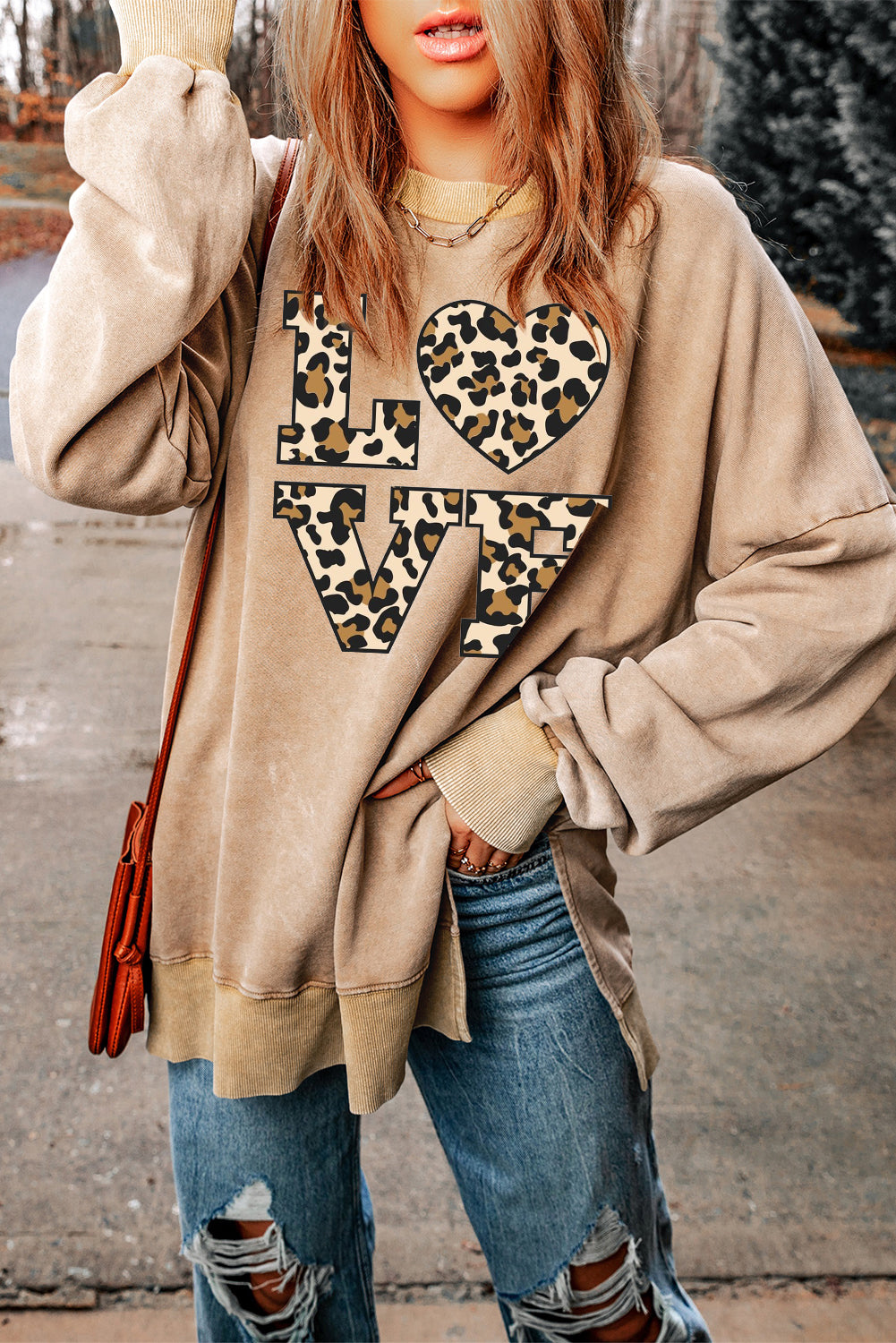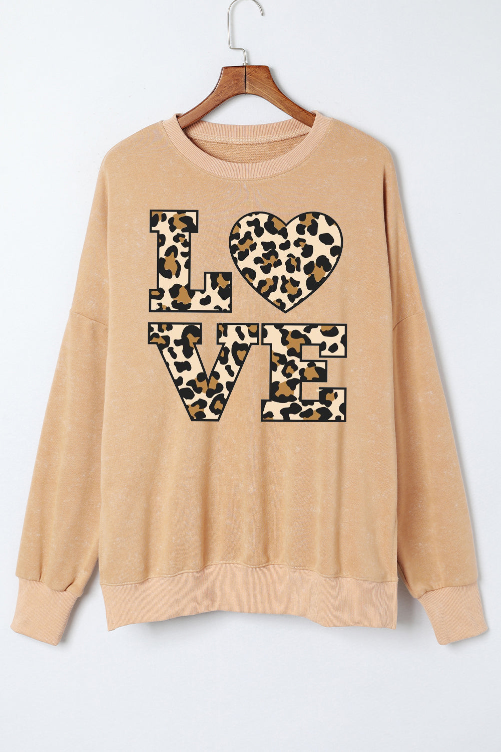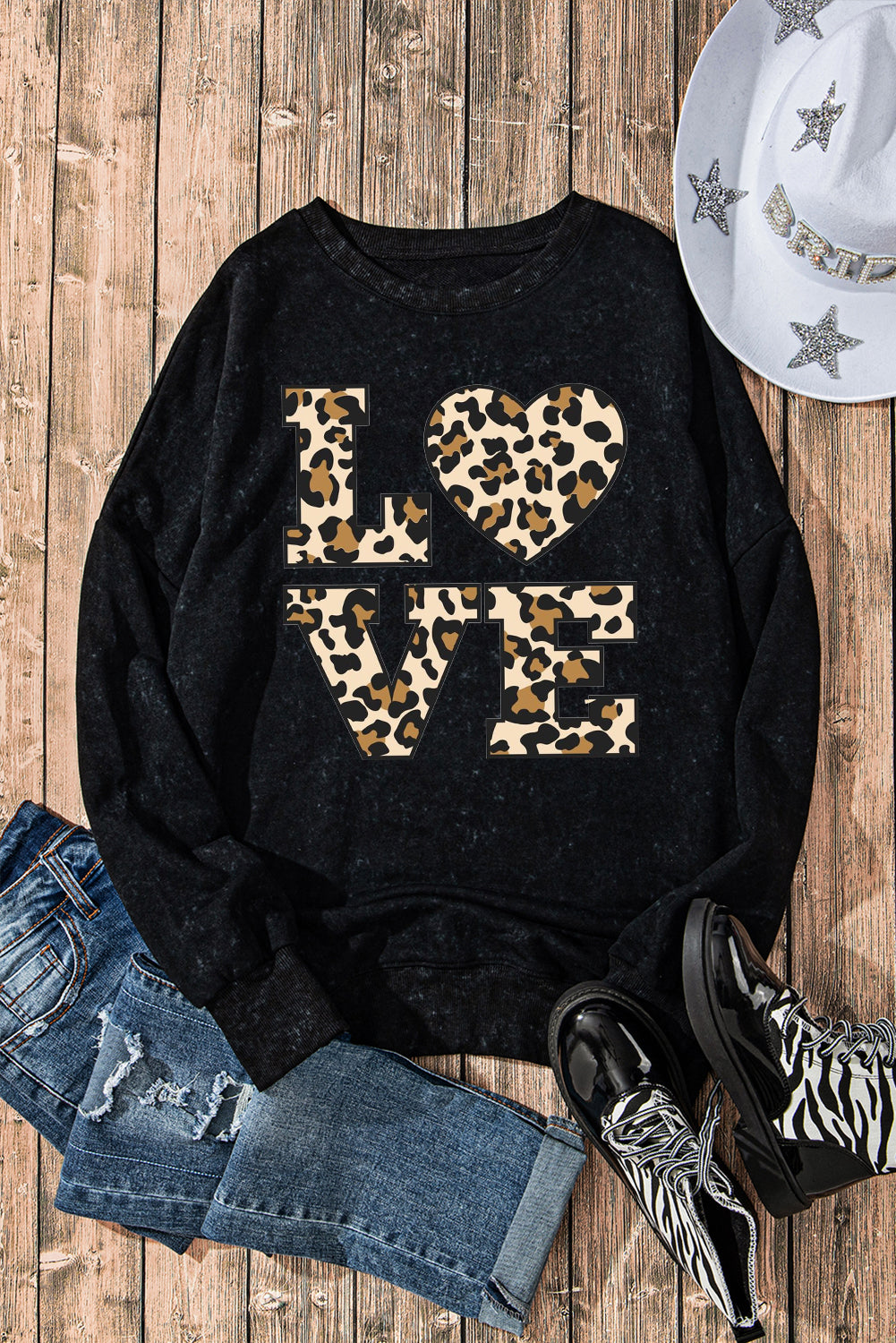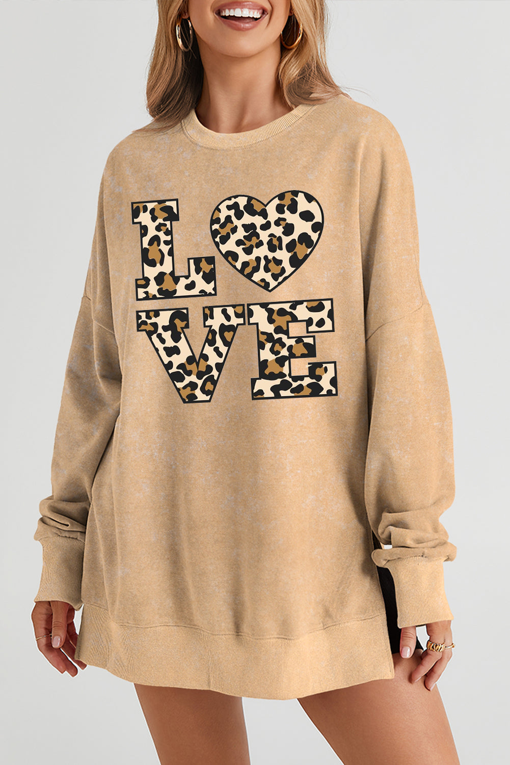 Date Night Leopard Print Heart Oversized Drop Shoulder Ribbed Sweatshirt