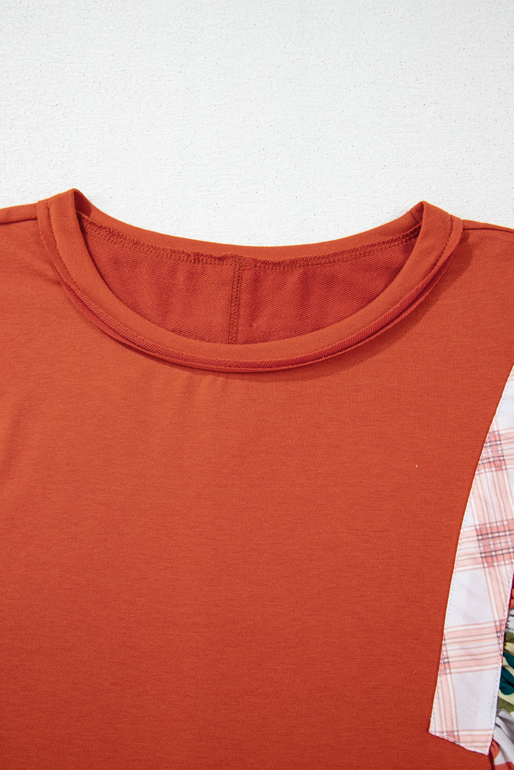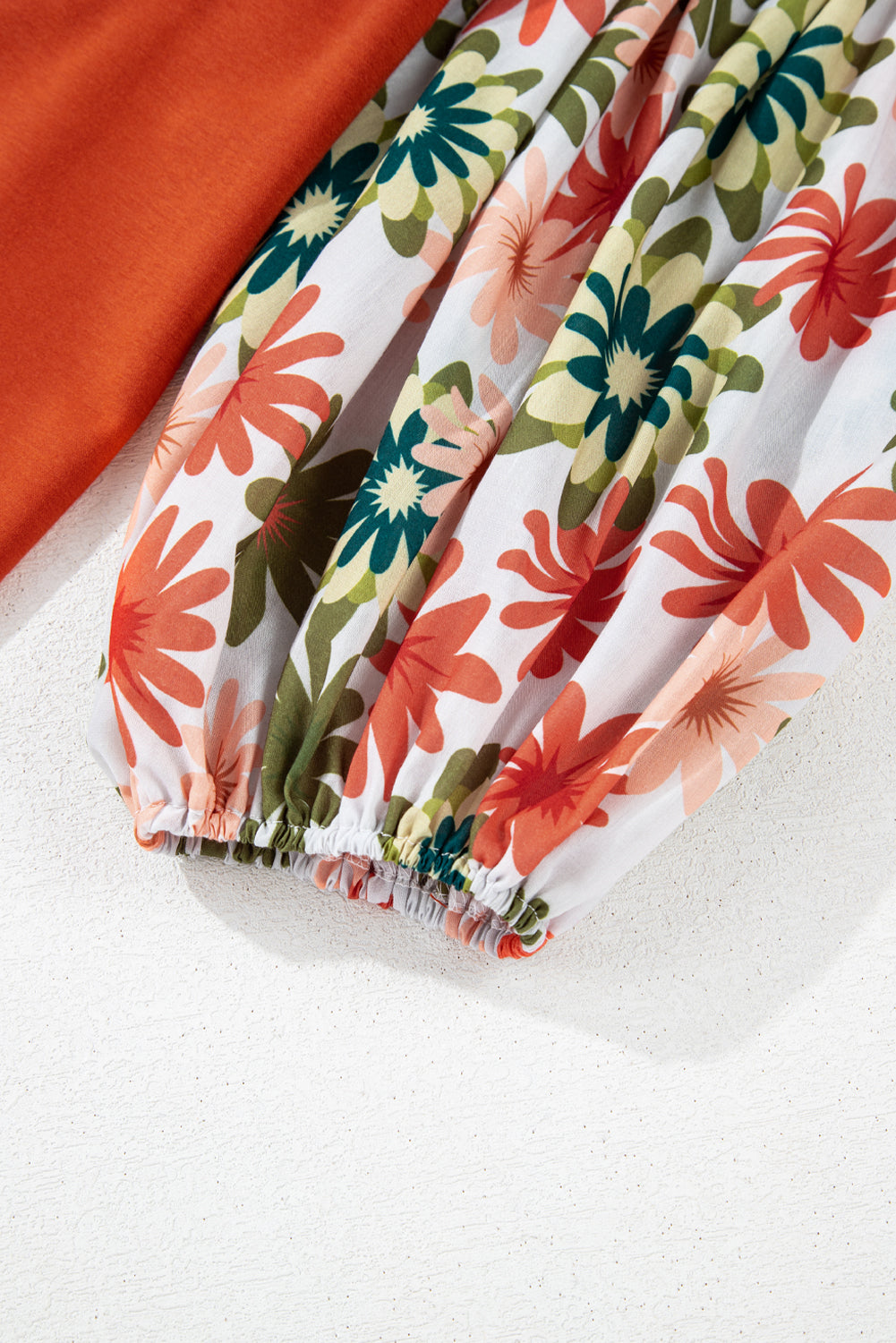 Desert Gold Floral Puff Sleeve Patchwork Round Neck Blouse