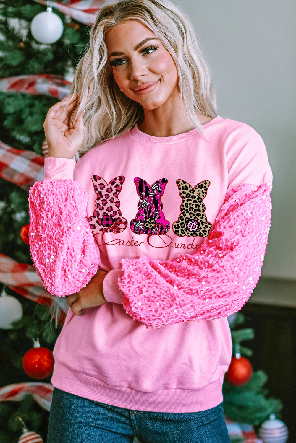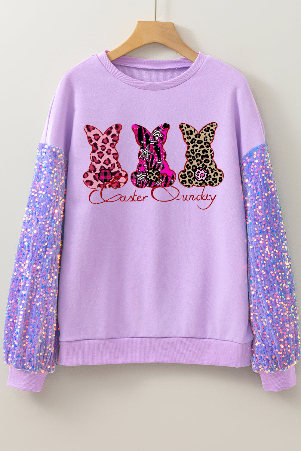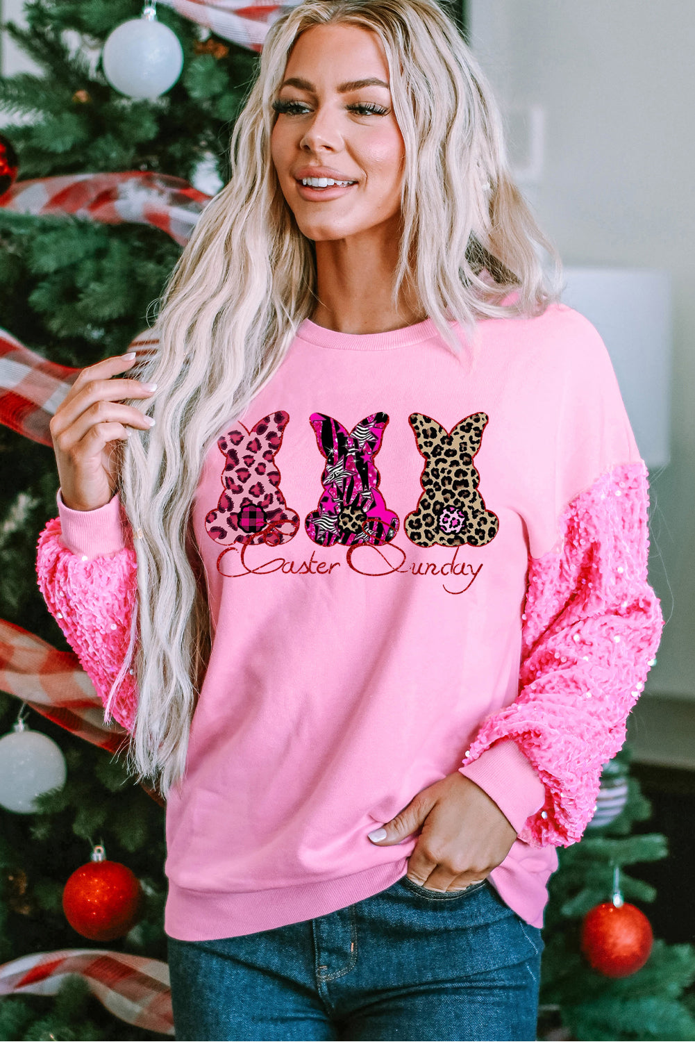 Easter Glam Sequin Patchwork Long Sleeve Top for Spring