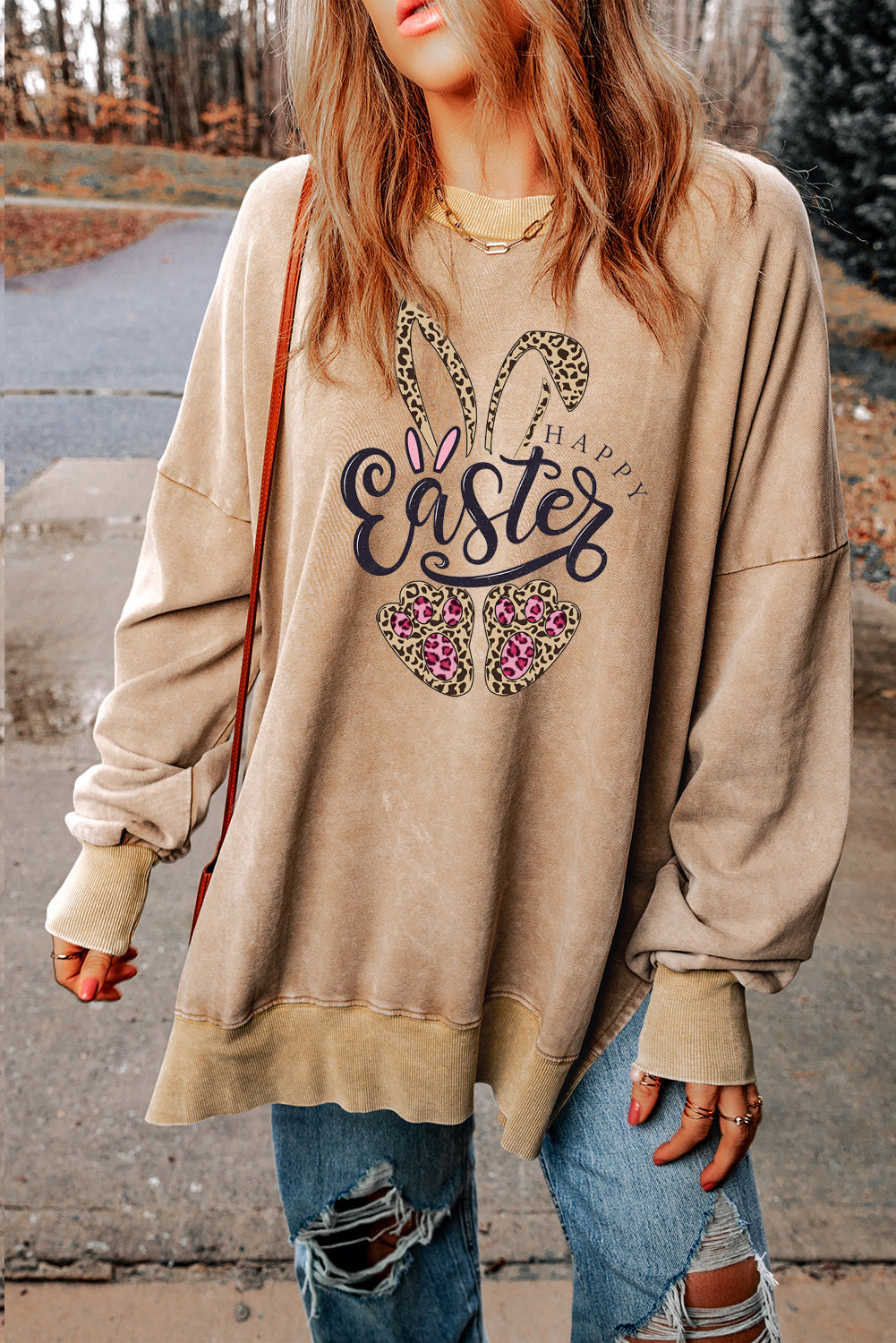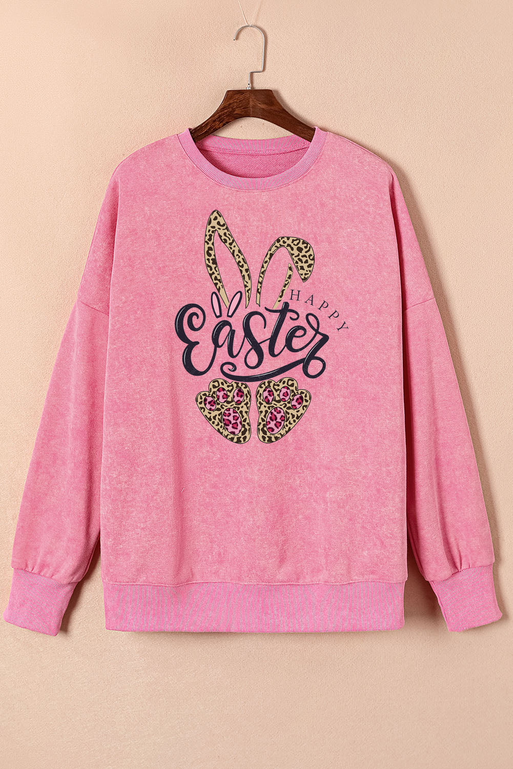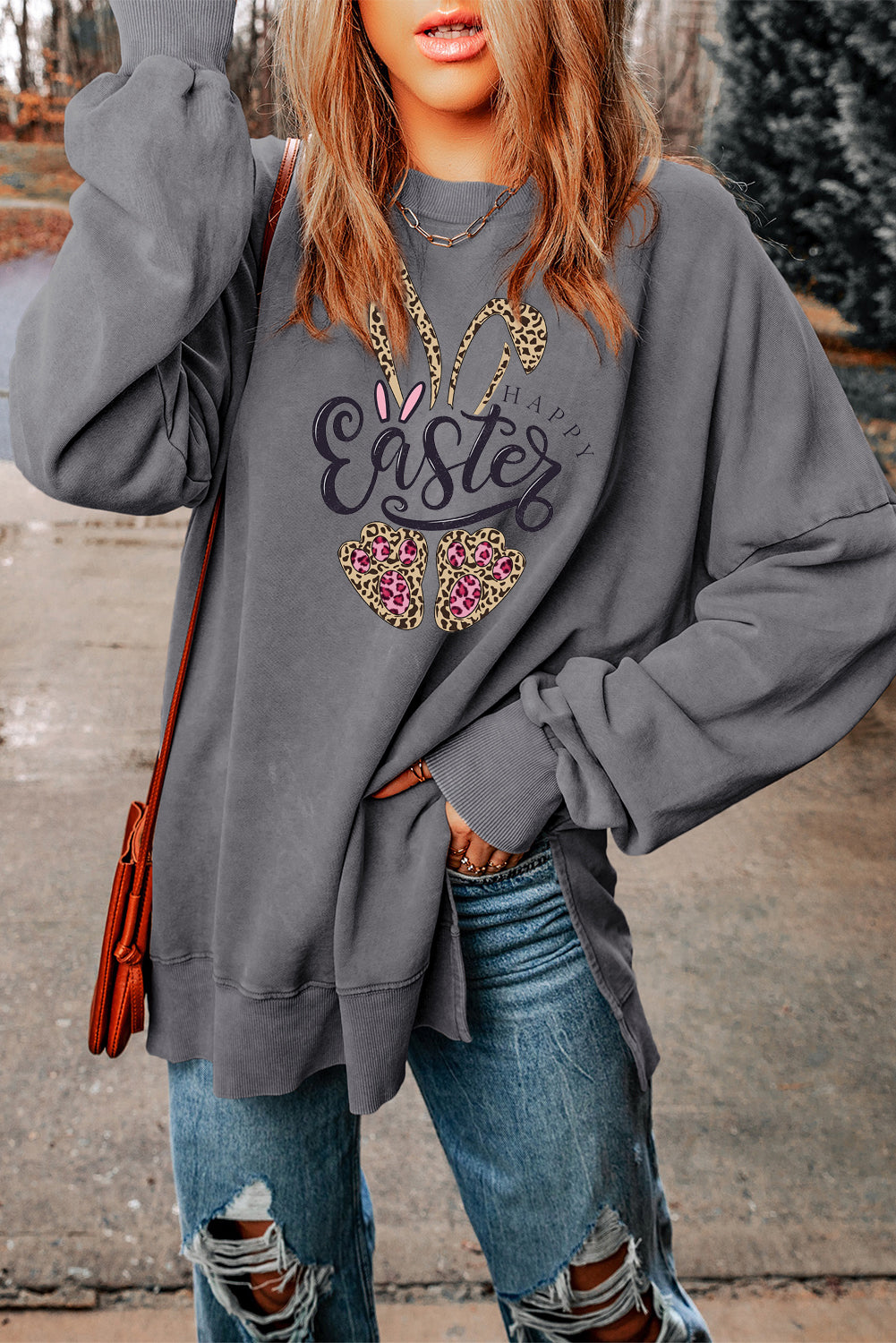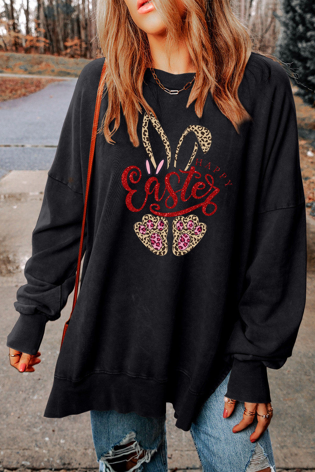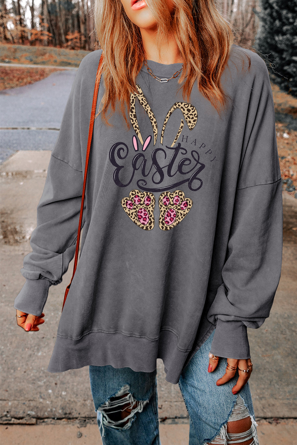 Easter Leopard Bunny Graphic Drop Shoulder Oversized Sweatshirt