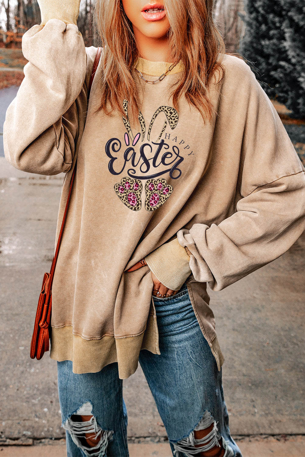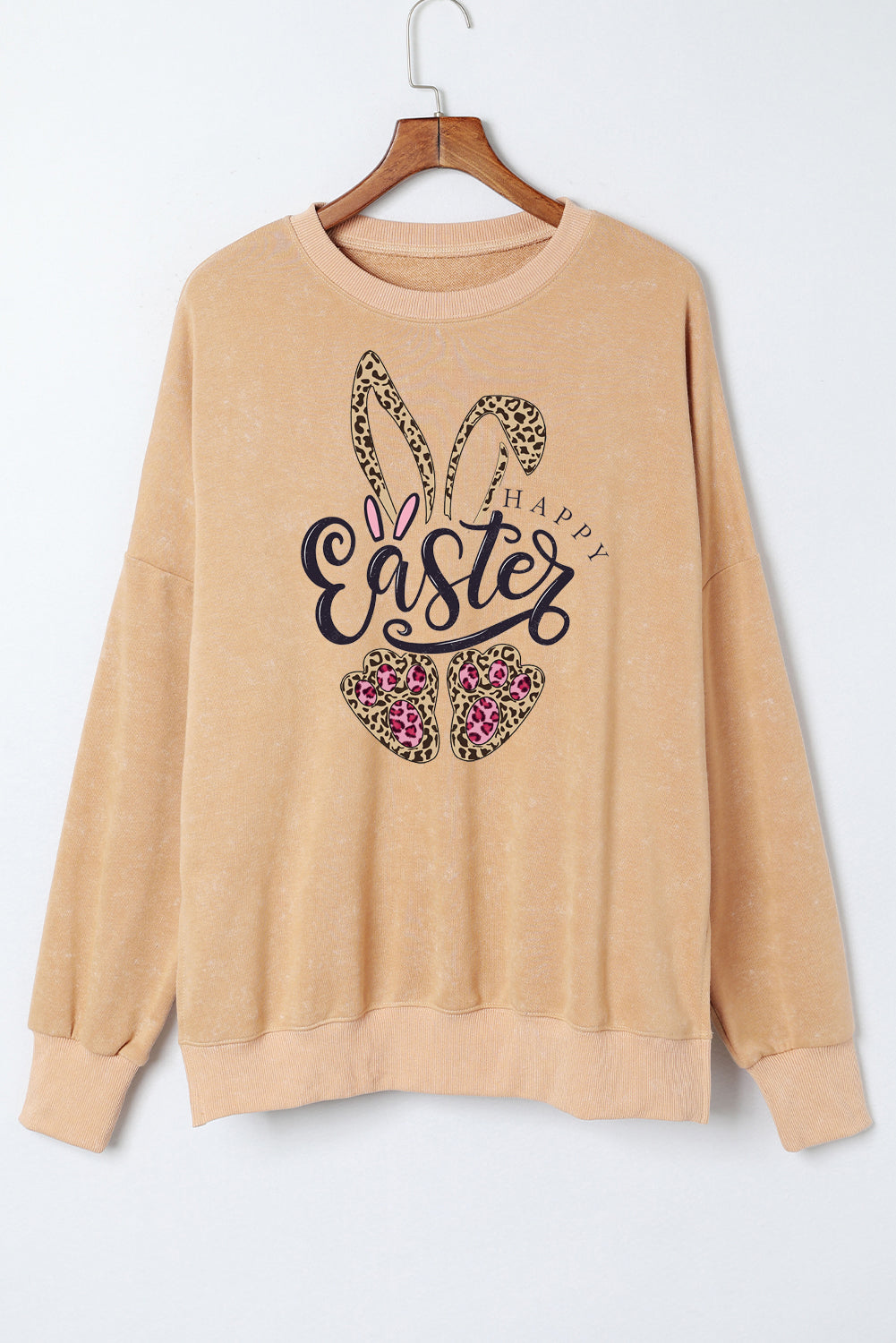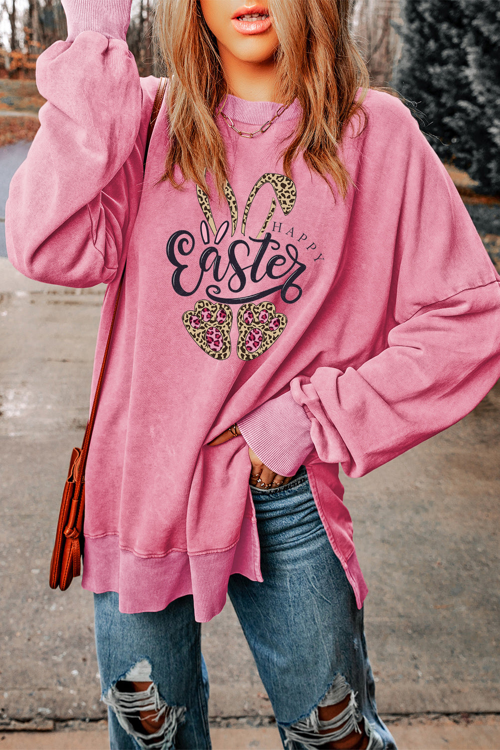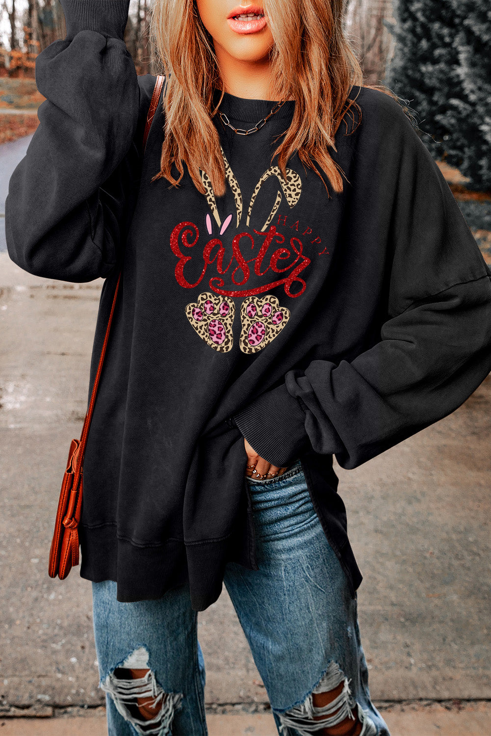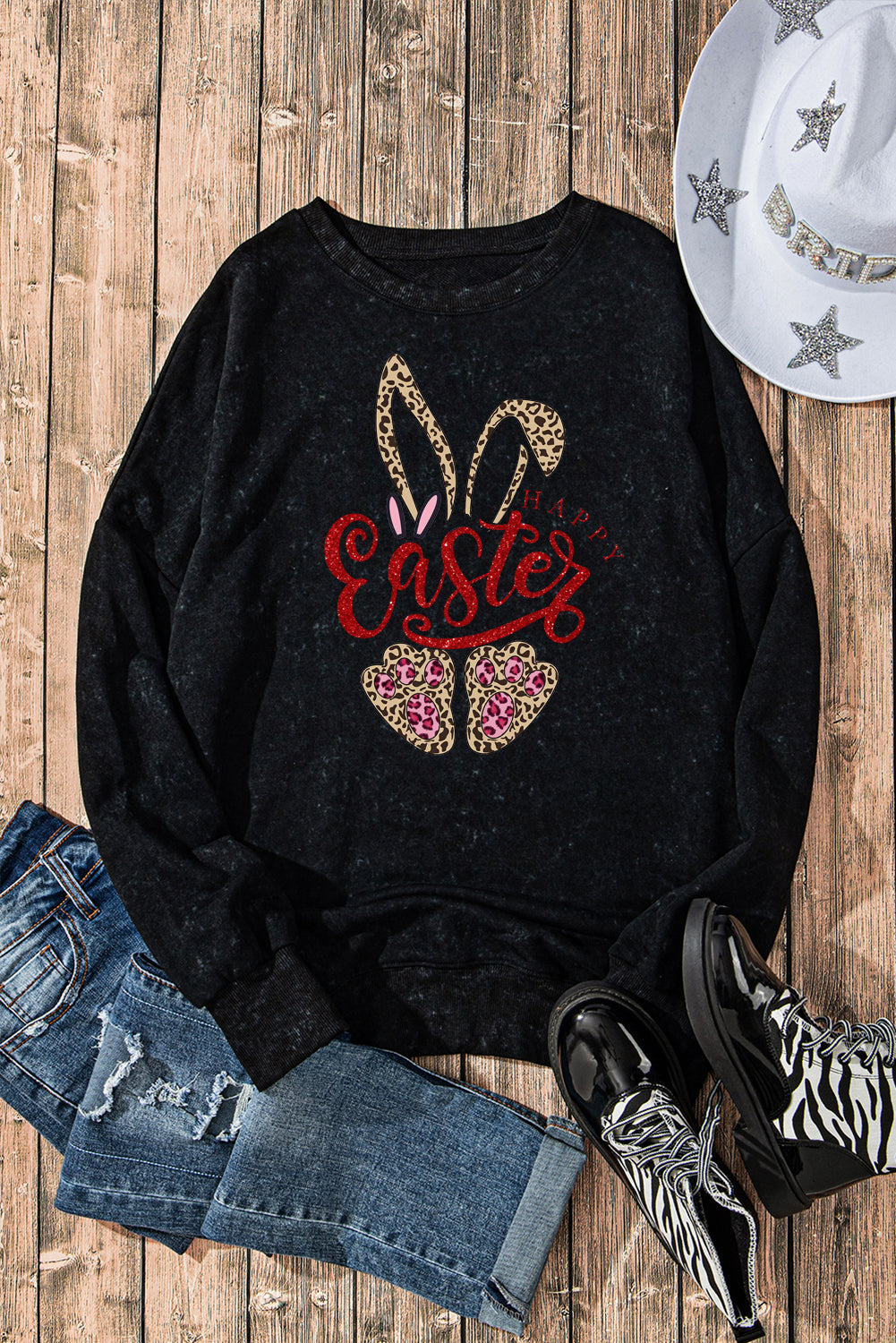 Easter Leopard Bunny Graphic Drop Shoulder Oversized Sweatshirt