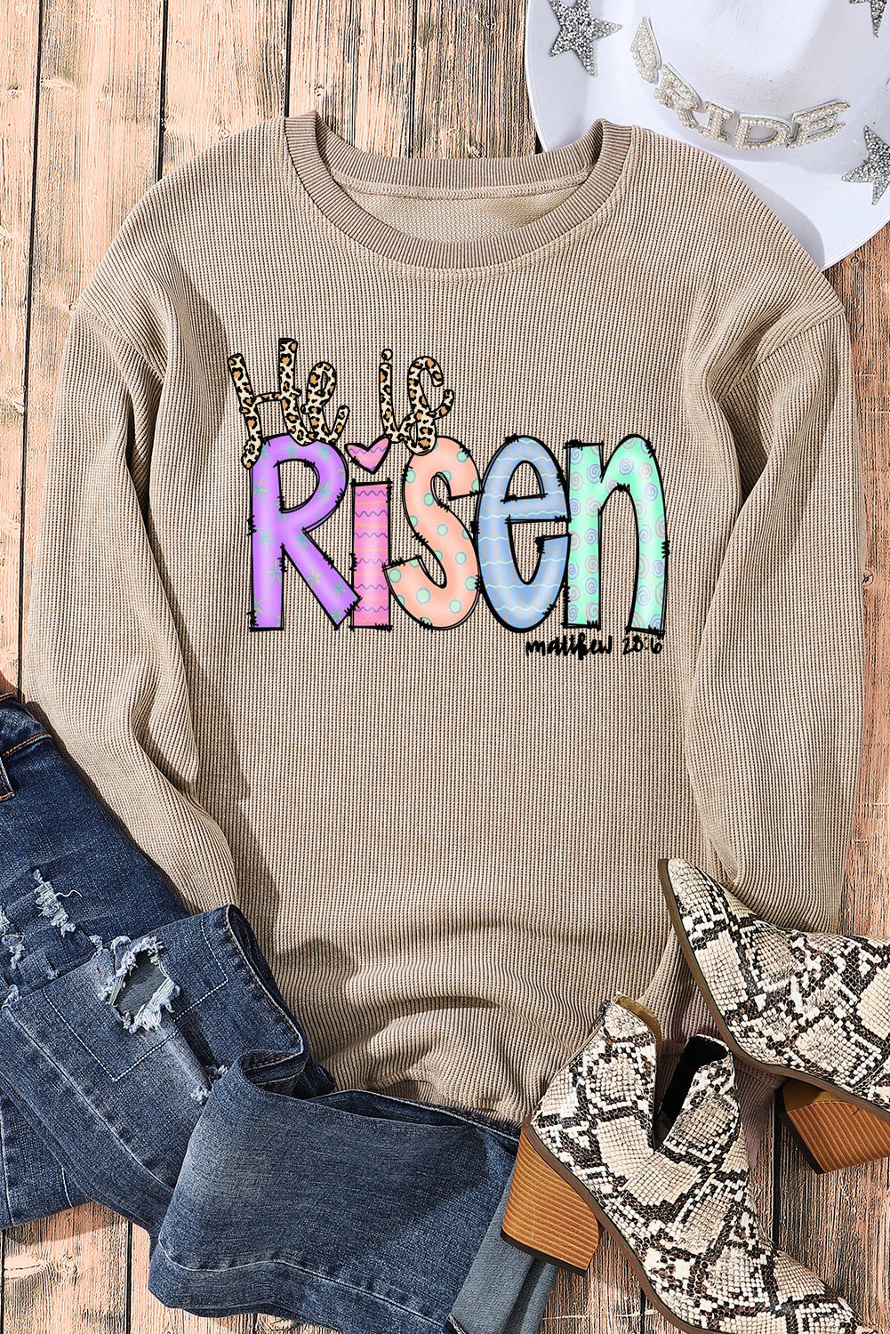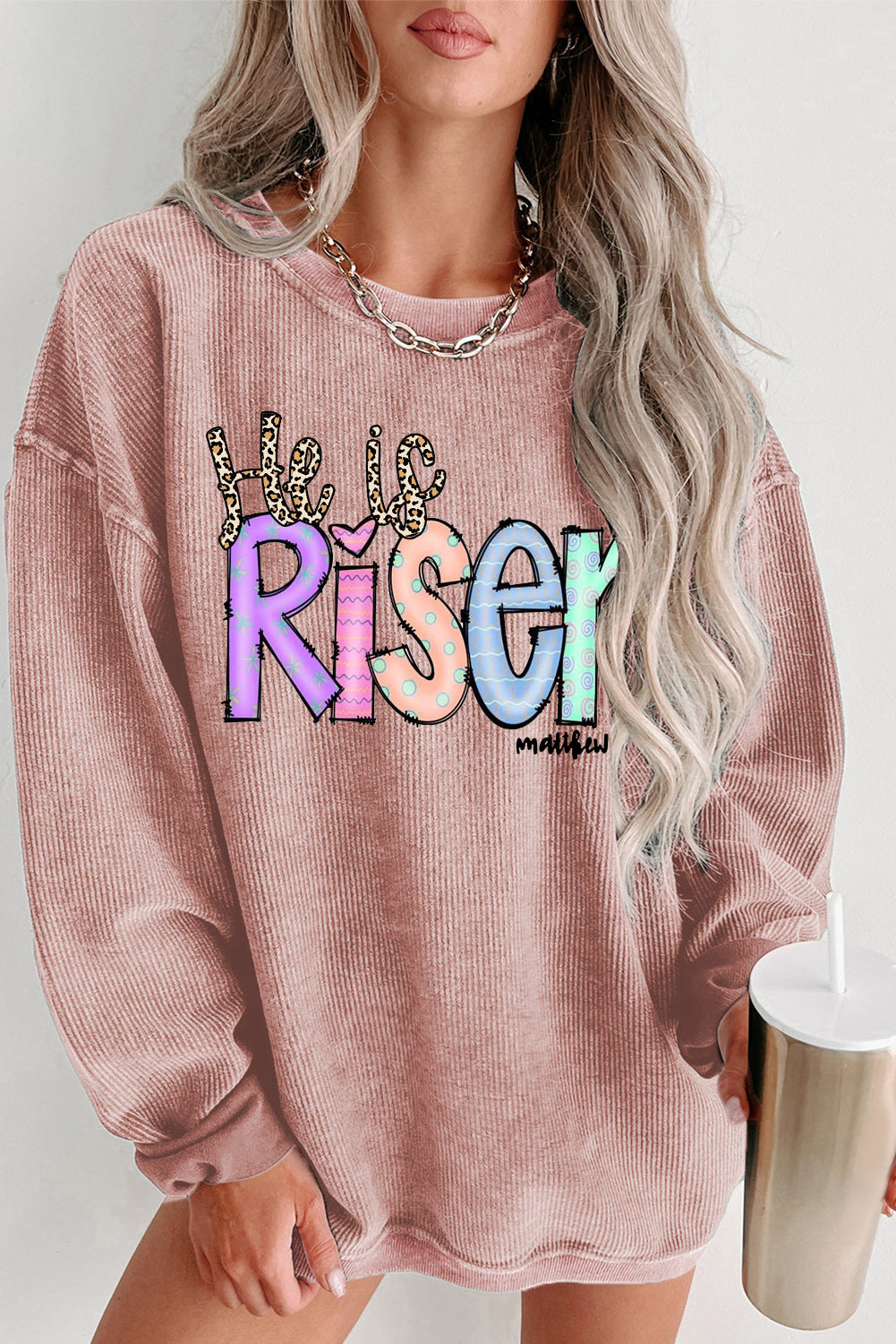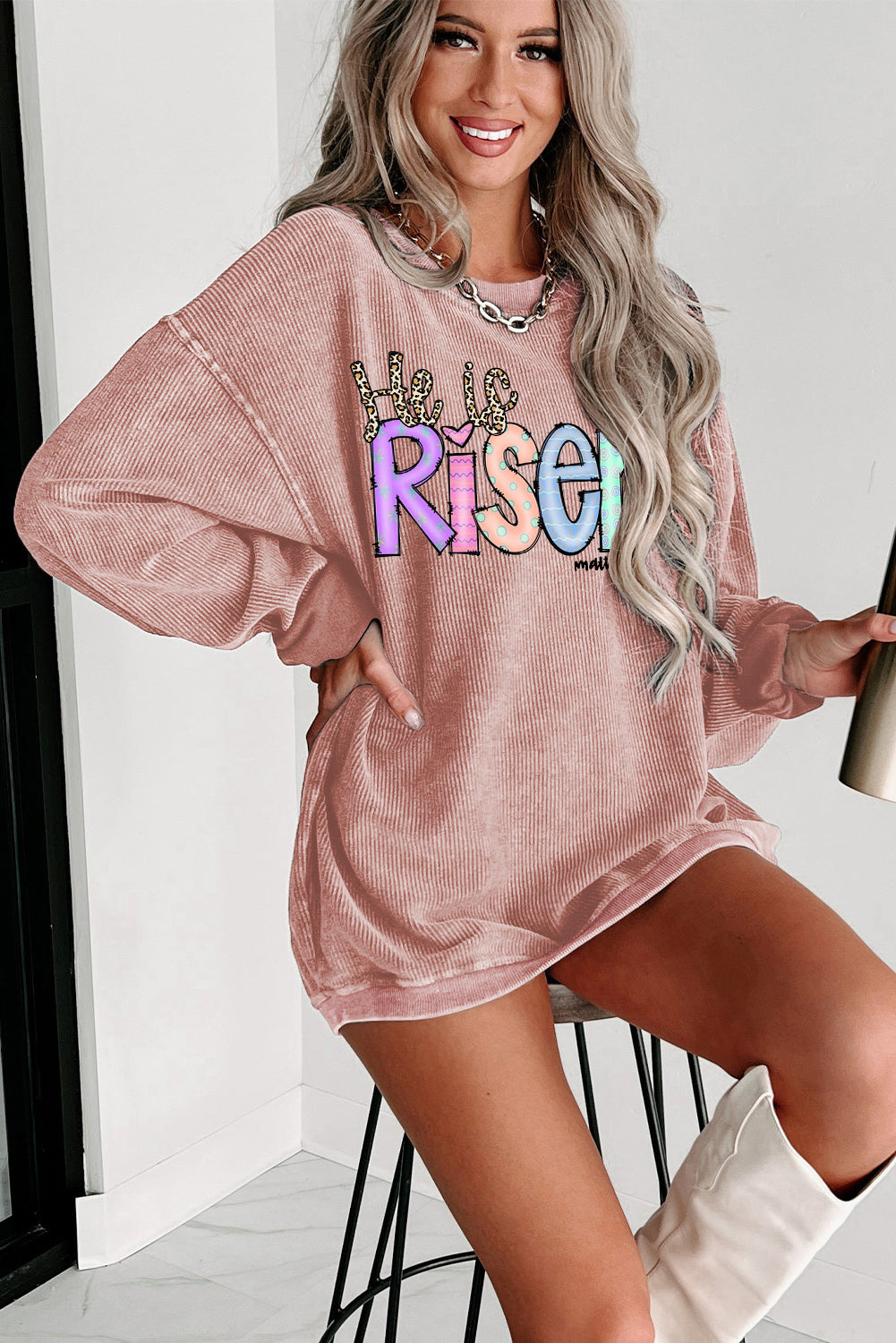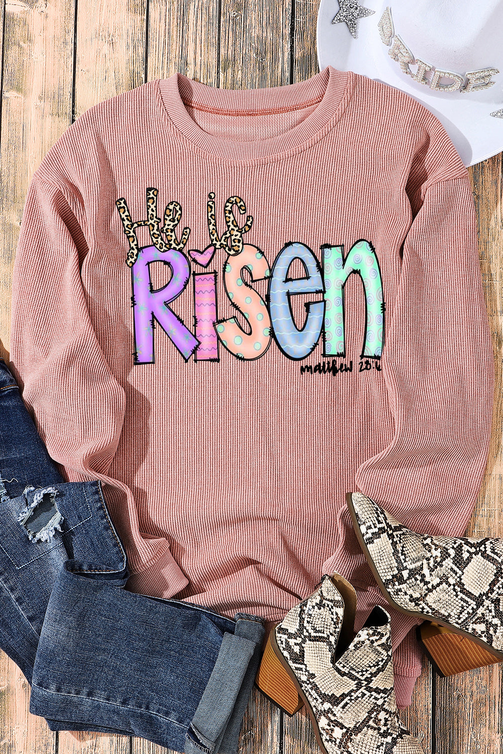Easter's Day Solid Ribbed Knit Round Neck Pullover Sweatshirt
