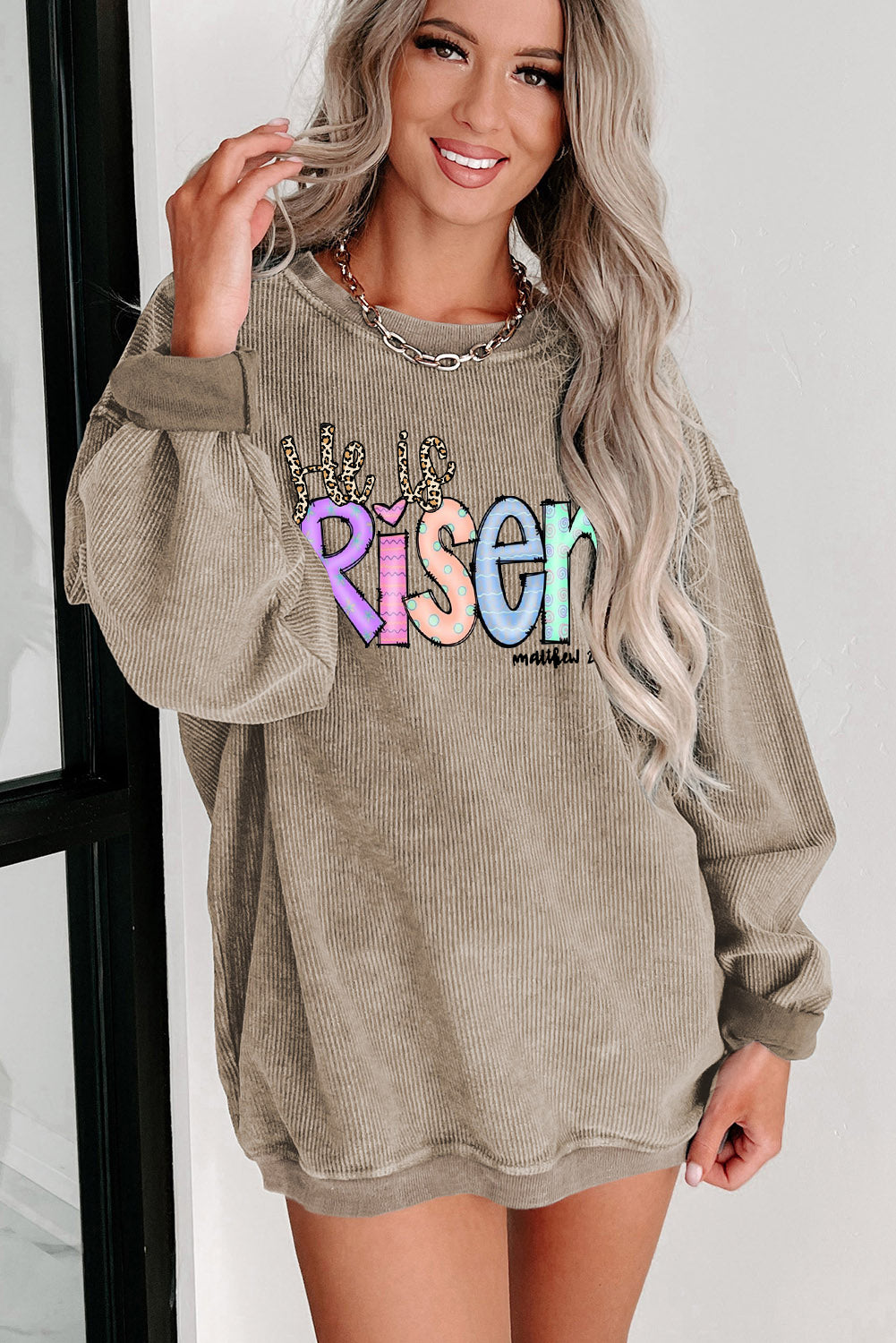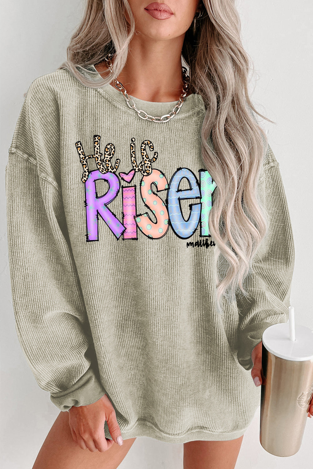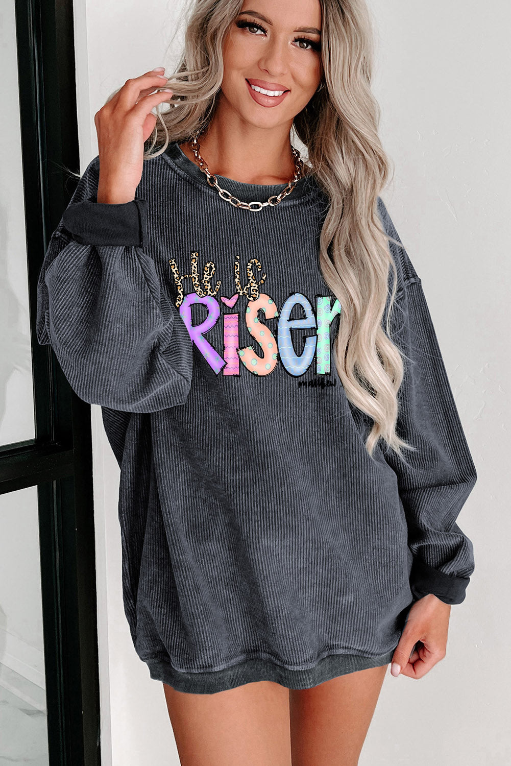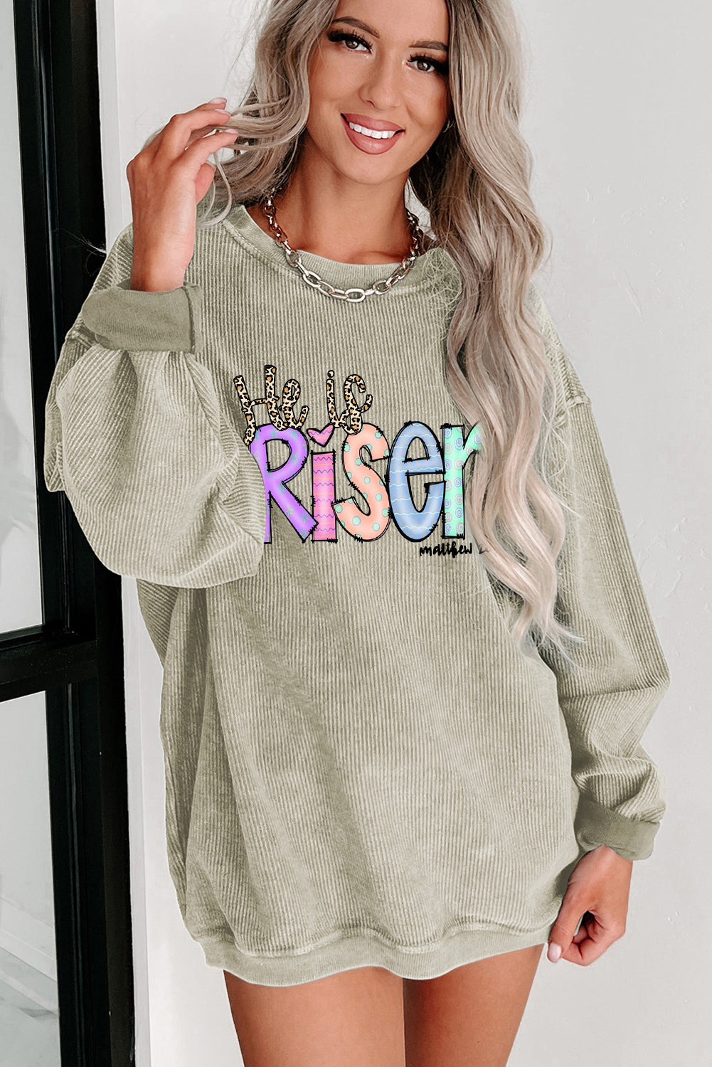 Easter's Day Solid Ribbed Knit Round Neck Pullover Sweatshirt