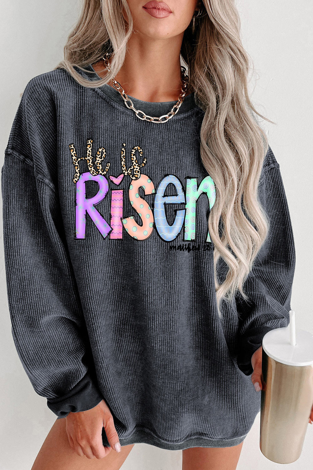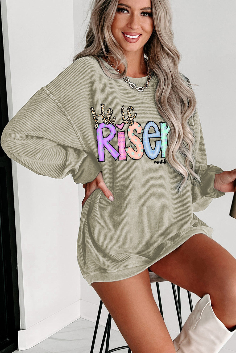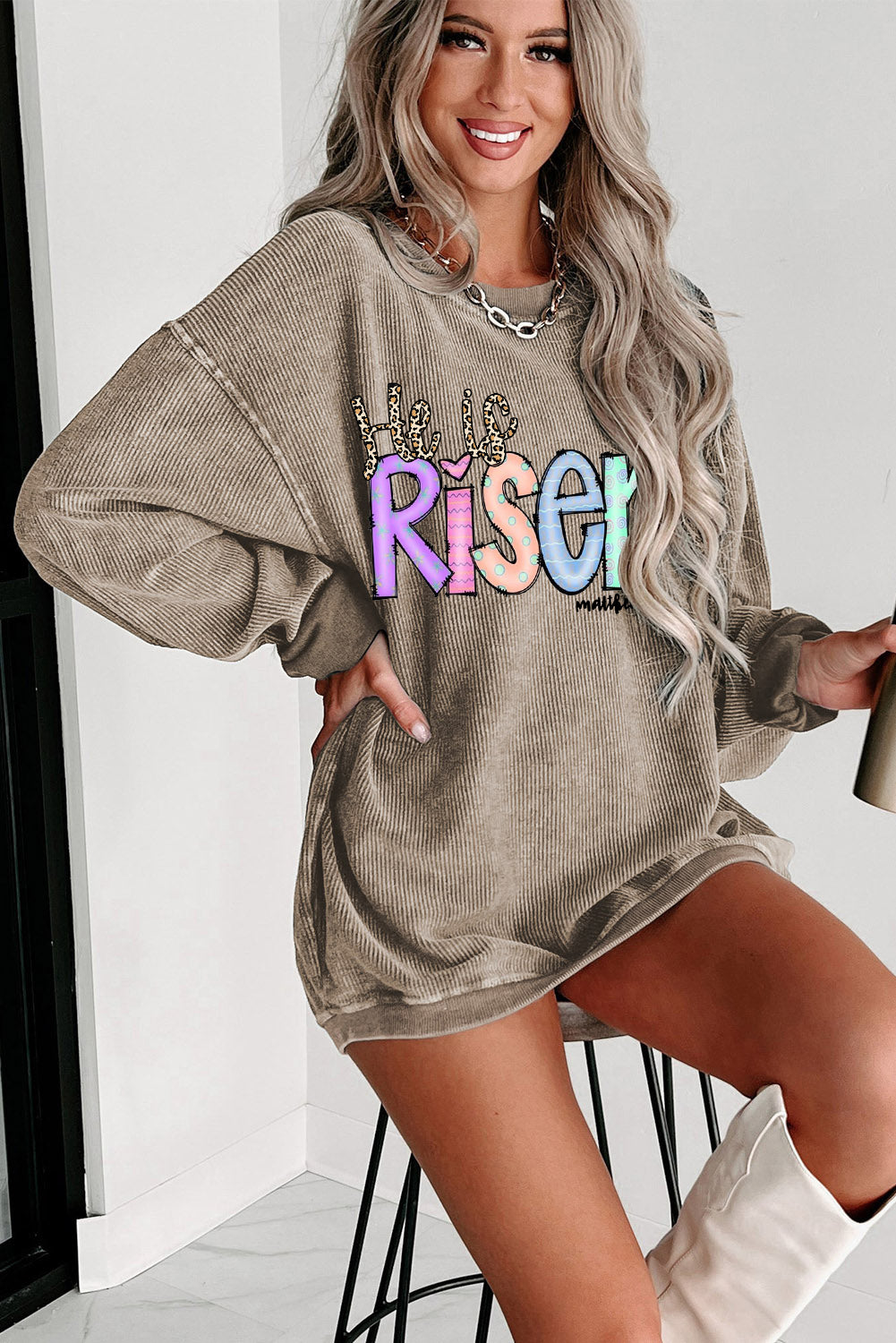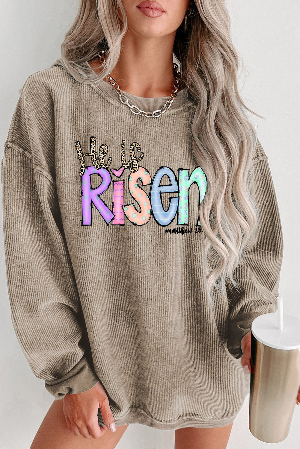 Easter's Day Solid Ribbed Knit Round Neck Pullover Sweatshirt