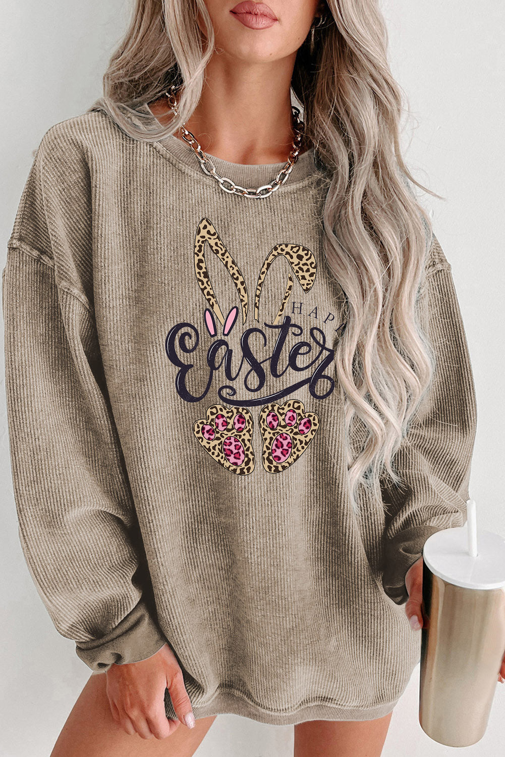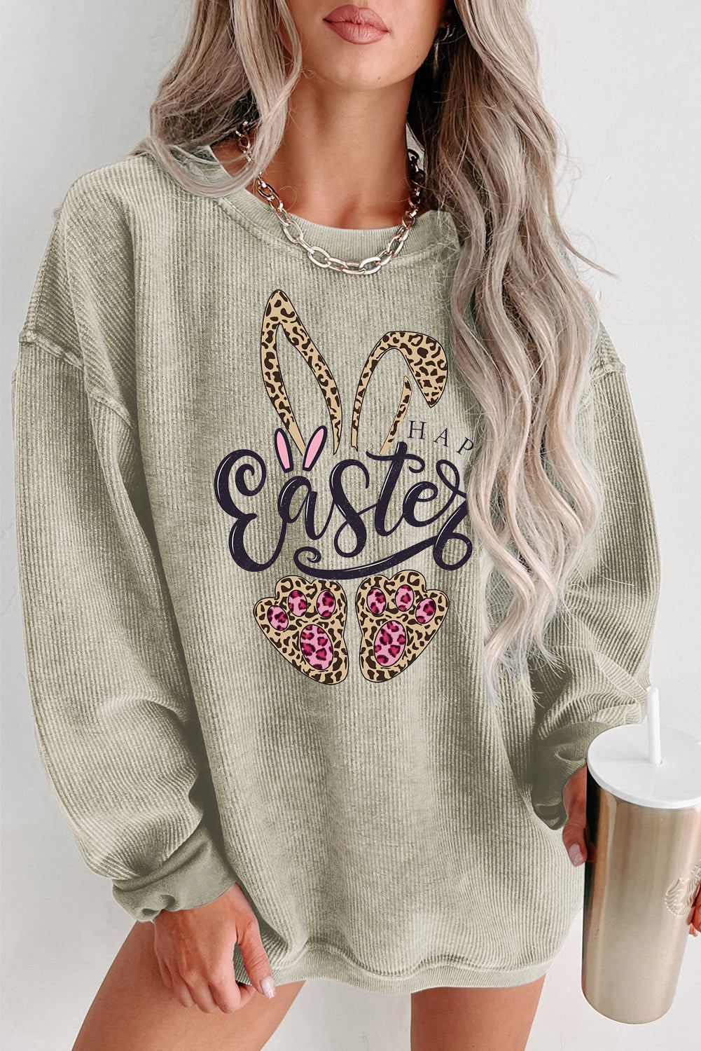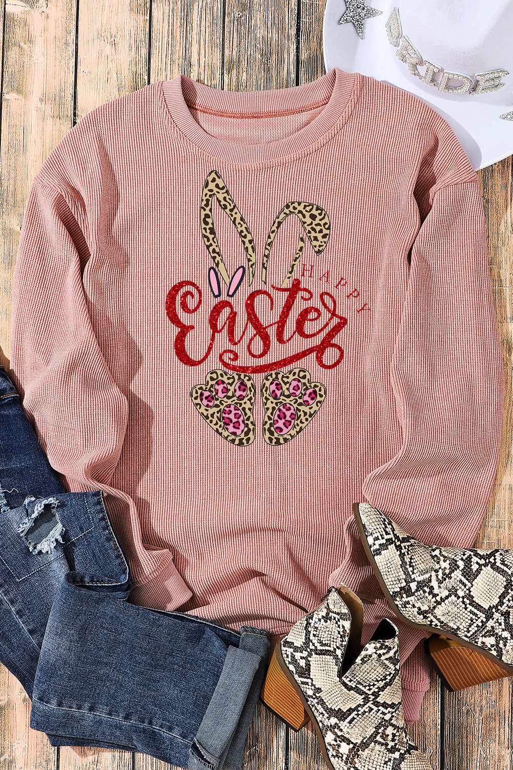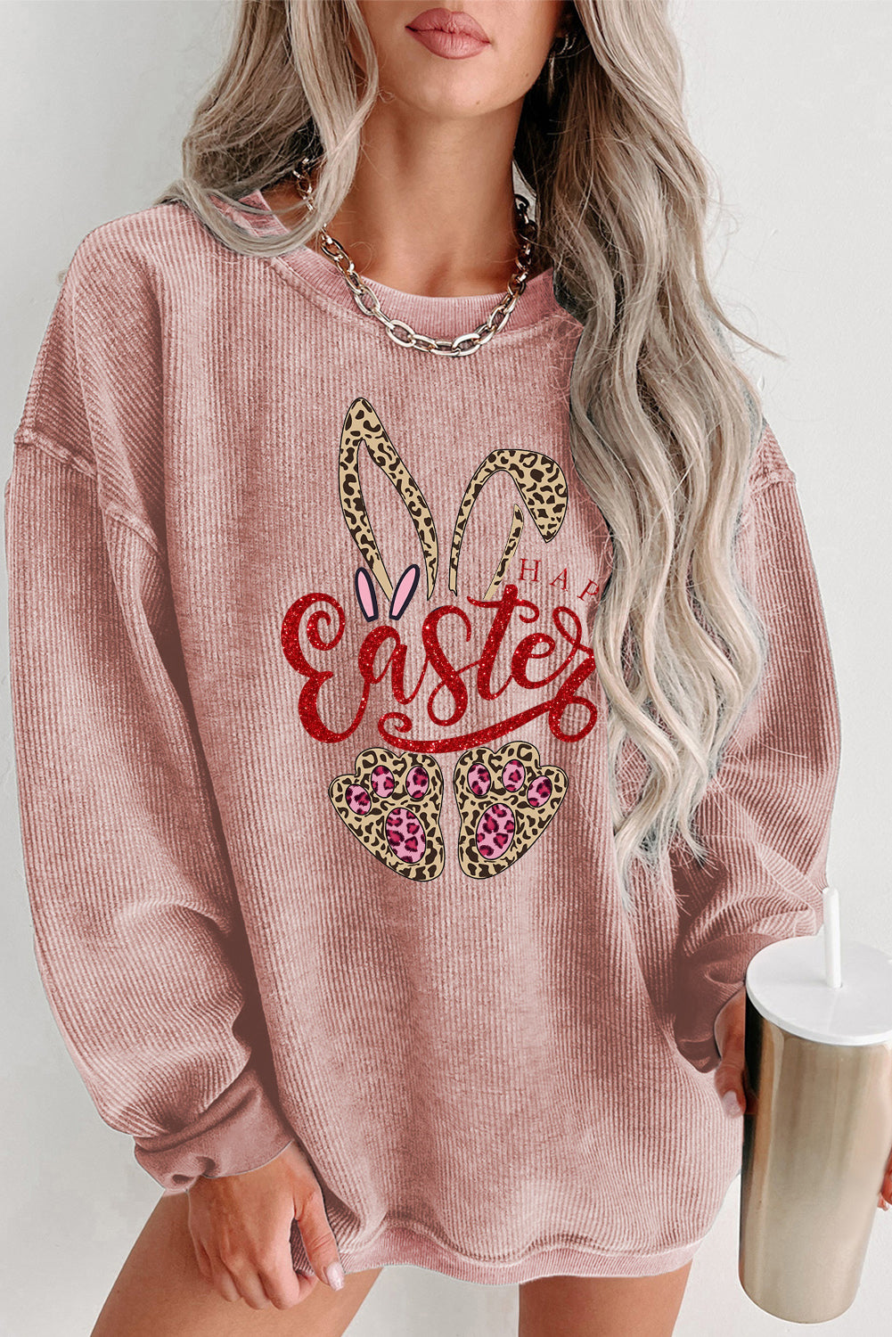 Ester Leopard Bunny Graphic Ribbed Knit Crew Neck Sweatshirt