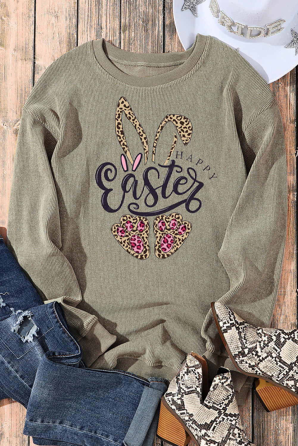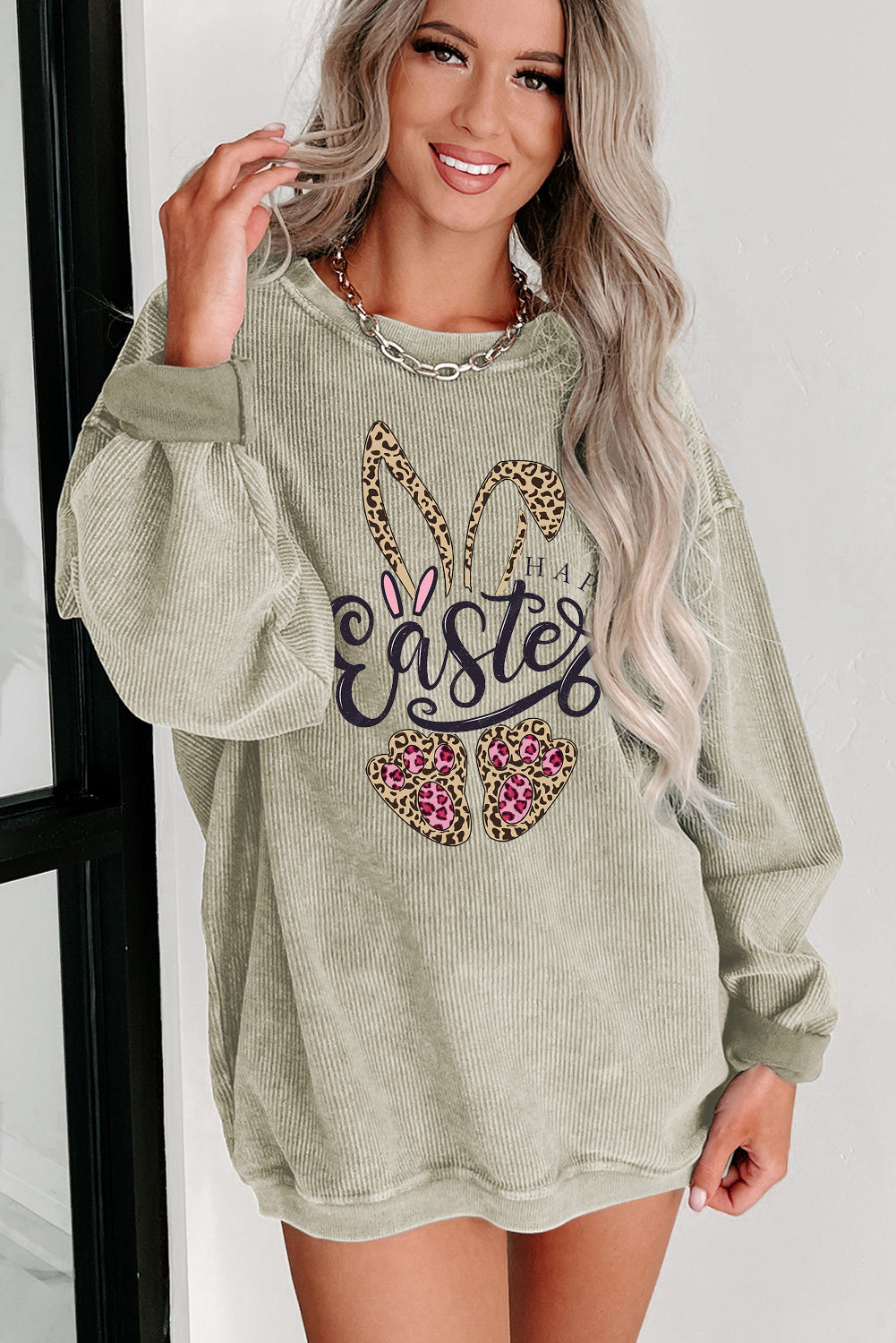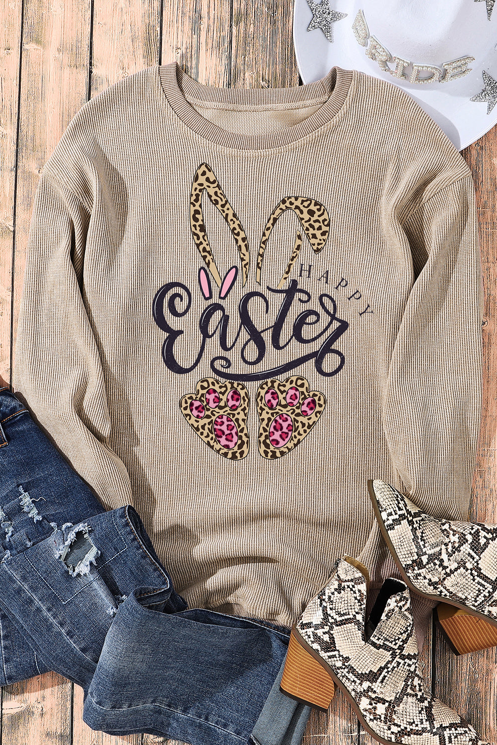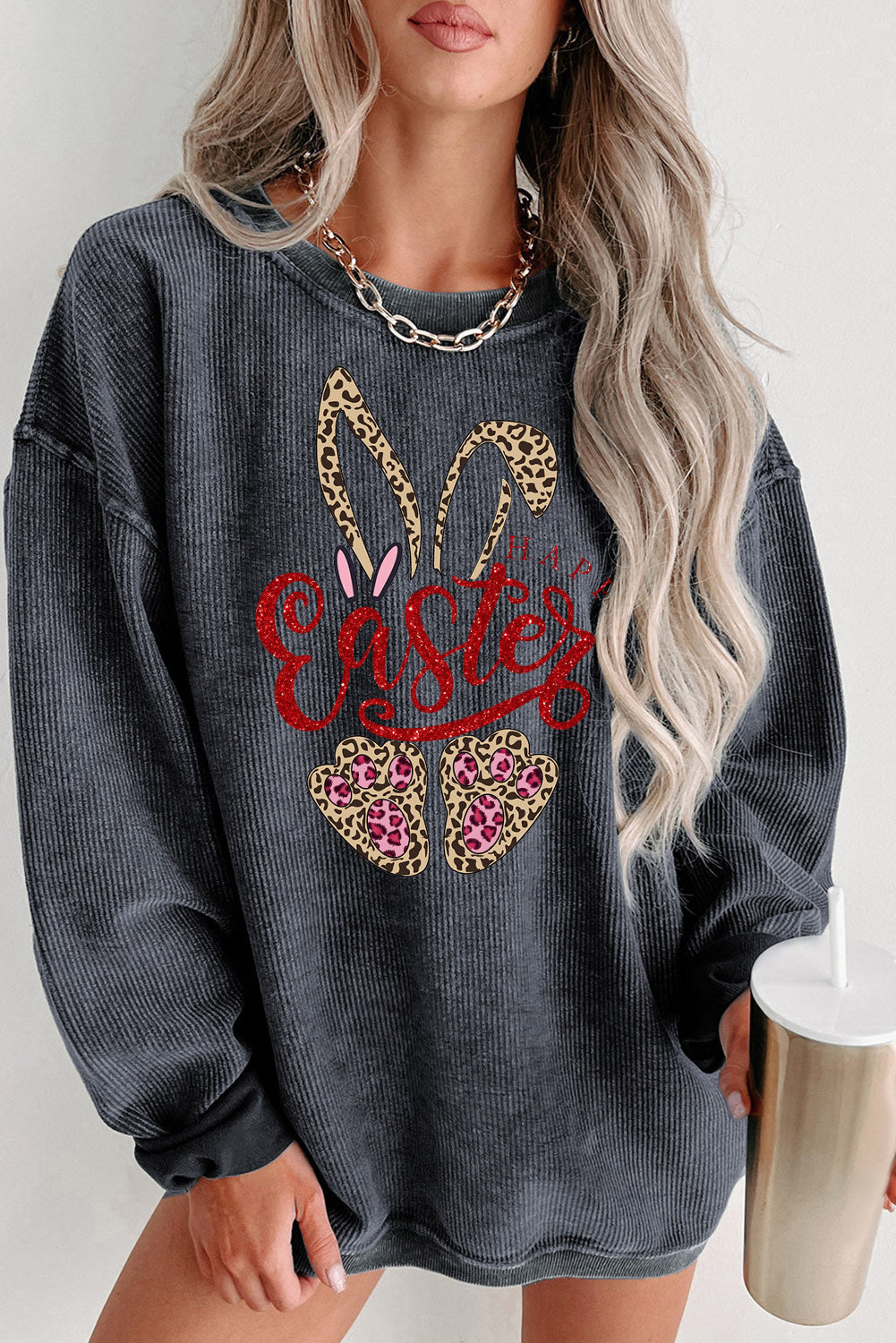 Ester Leopard Bunny Graphic Ribbed Knit Crew Neck Sweatshirt