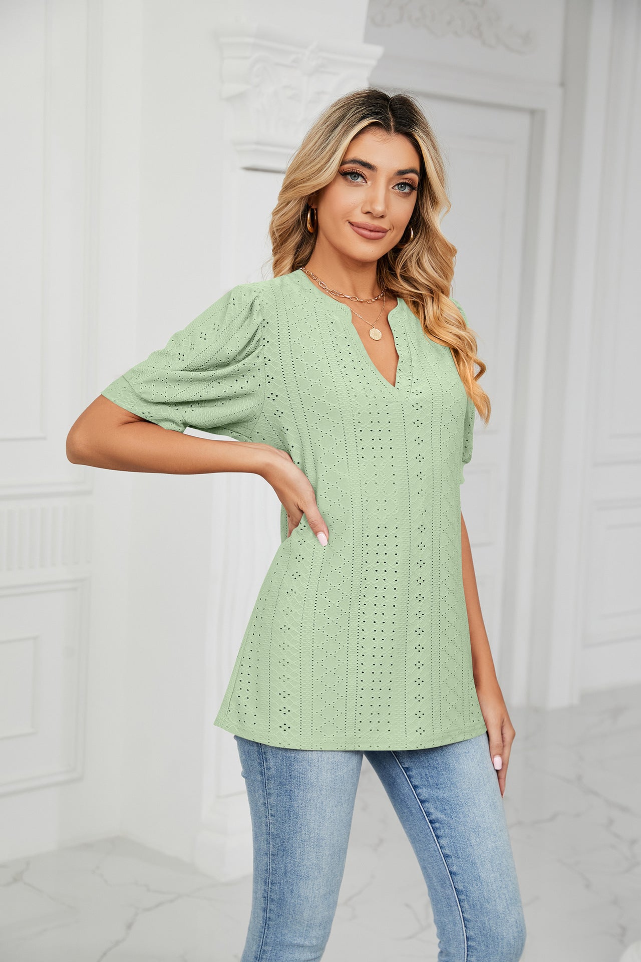 - Breathable summer essentials: Our summer casual v-neck solid color hollow bubble sleeve loose t-shirt top for women is perfect for casual outings.