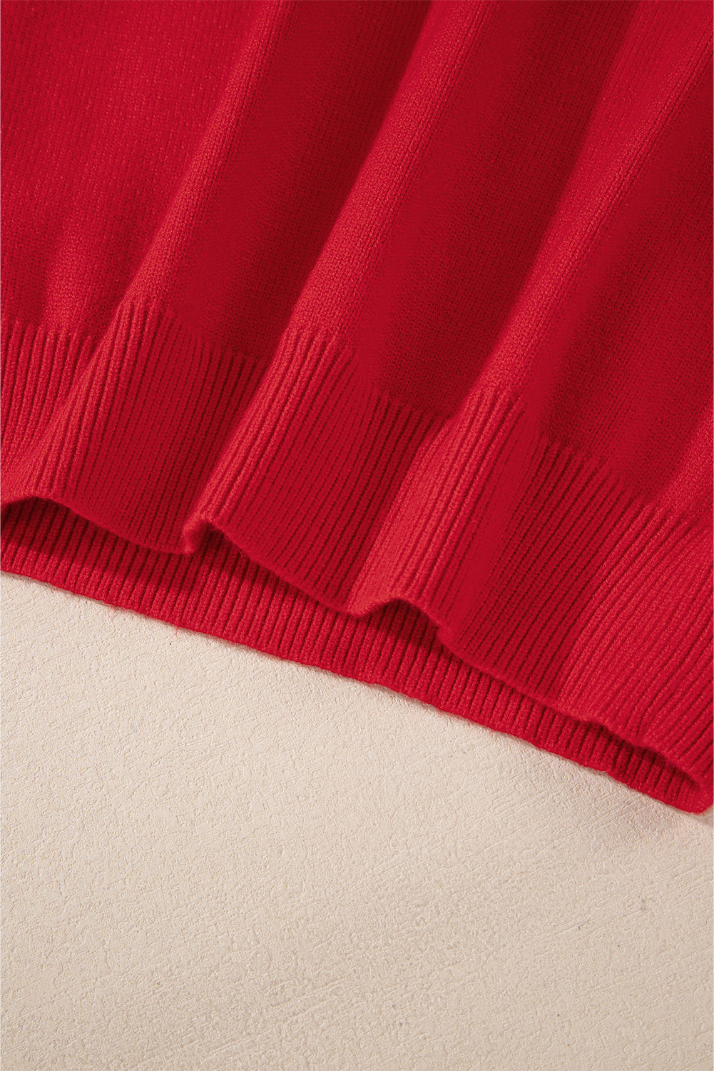 Fiery Red Pearl Beaded Merry Casual Sweater