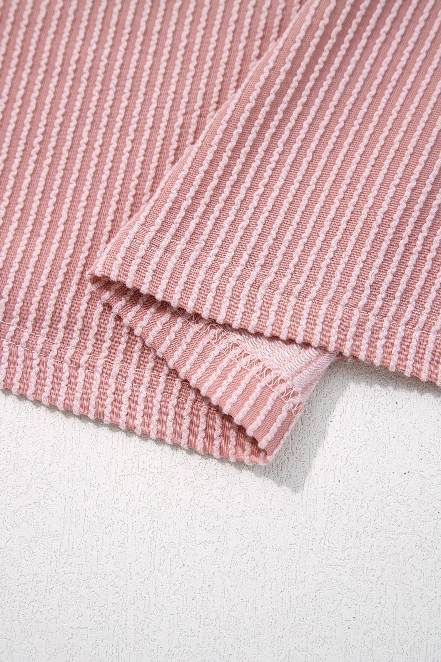Ribbed textured fabric provides comfortable stretch and a flattering fit.