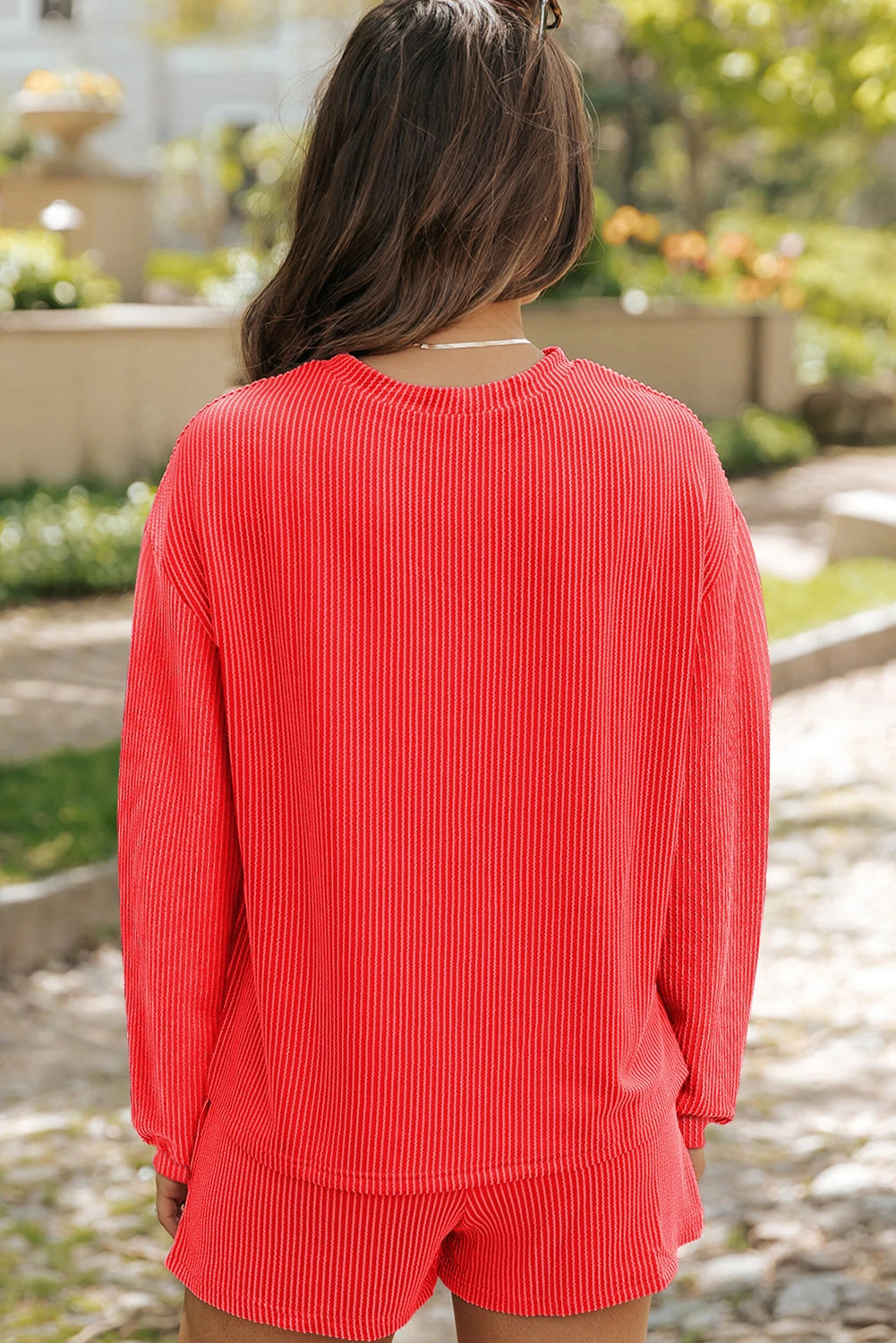 Gold Flame Sequin Christmas Tree Corded Long Sleeve Top ans Shorts Set