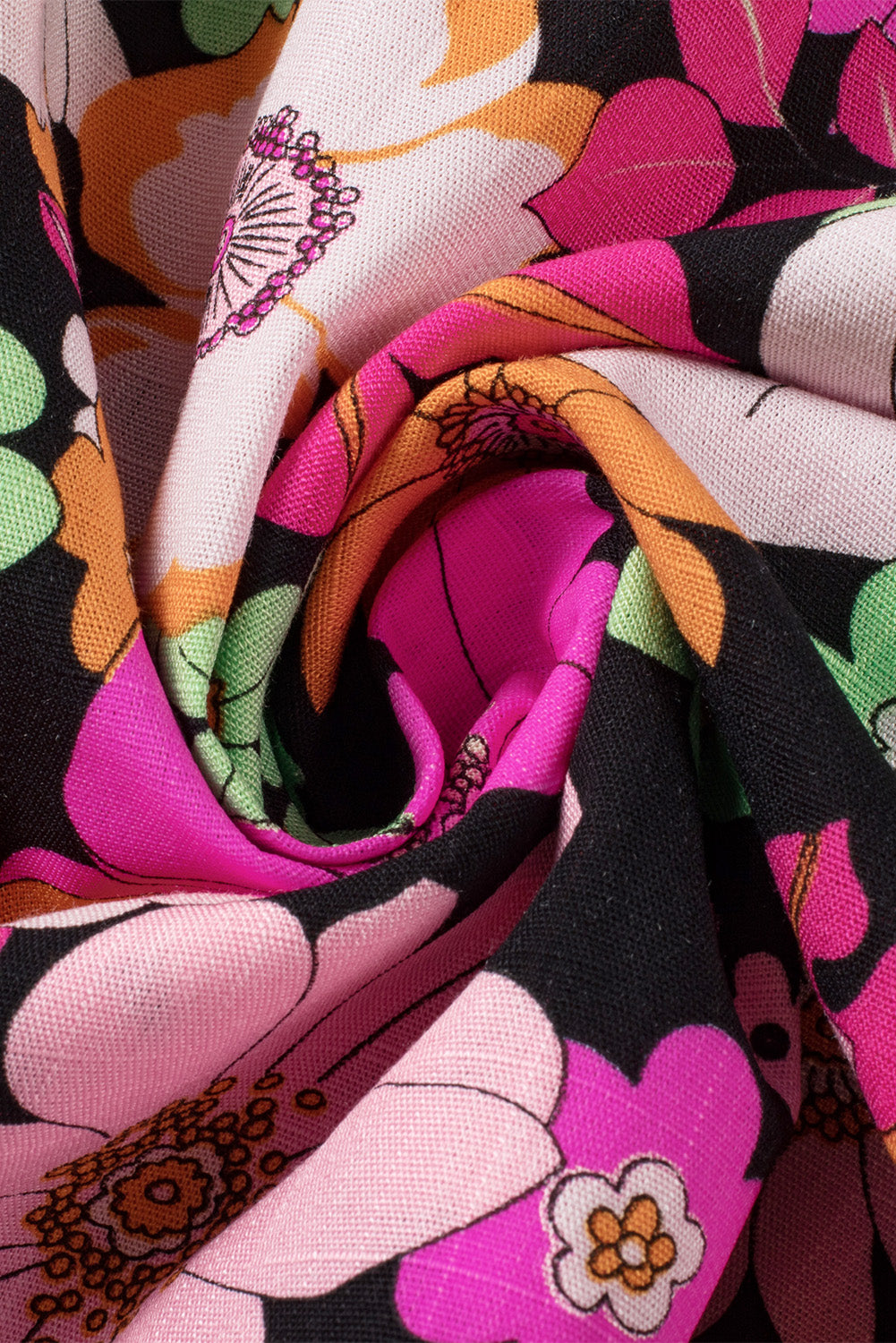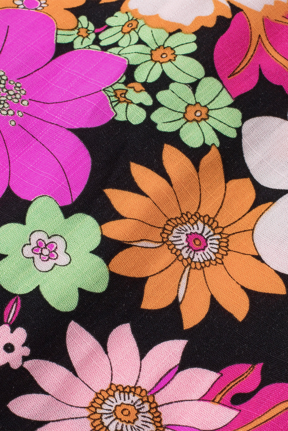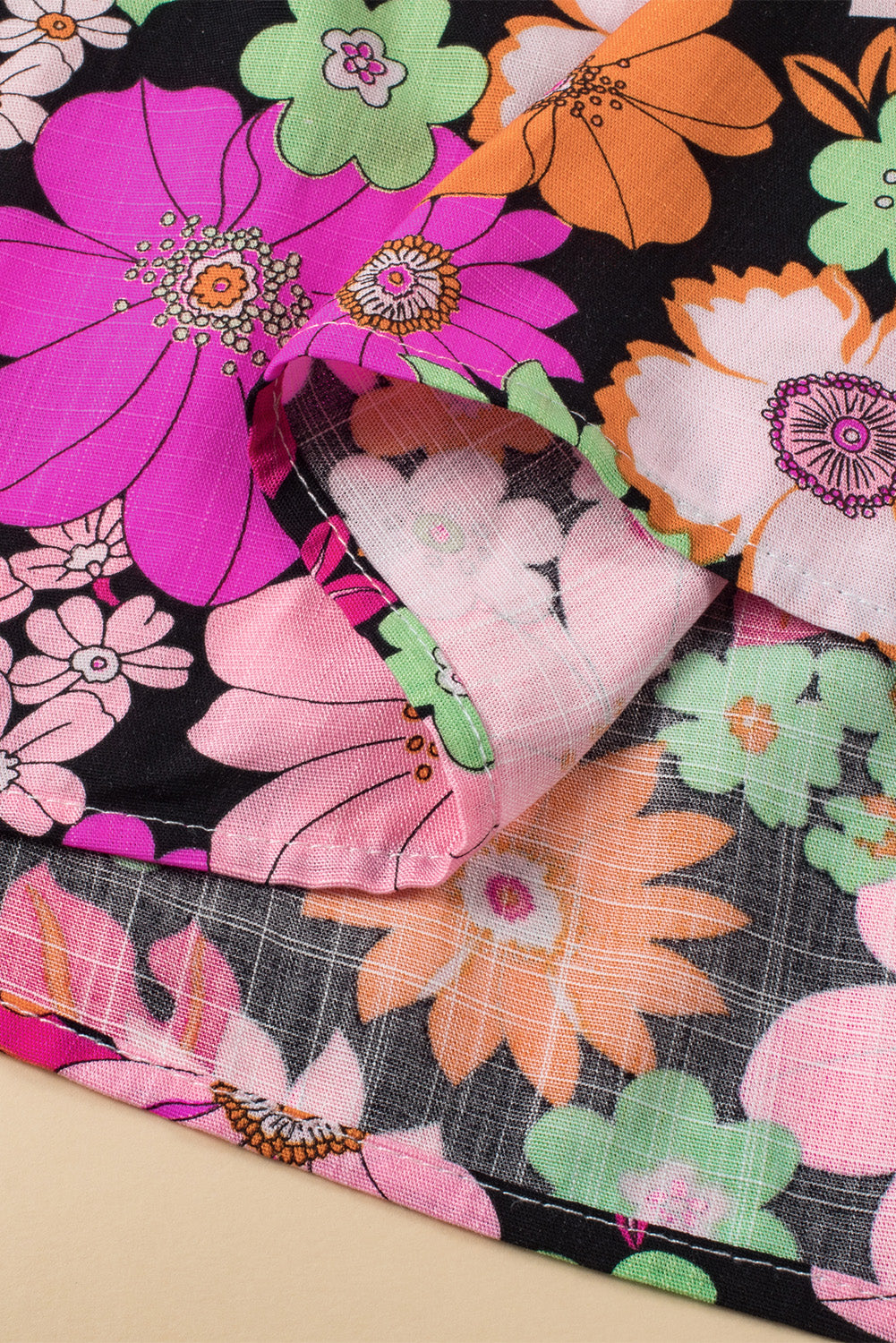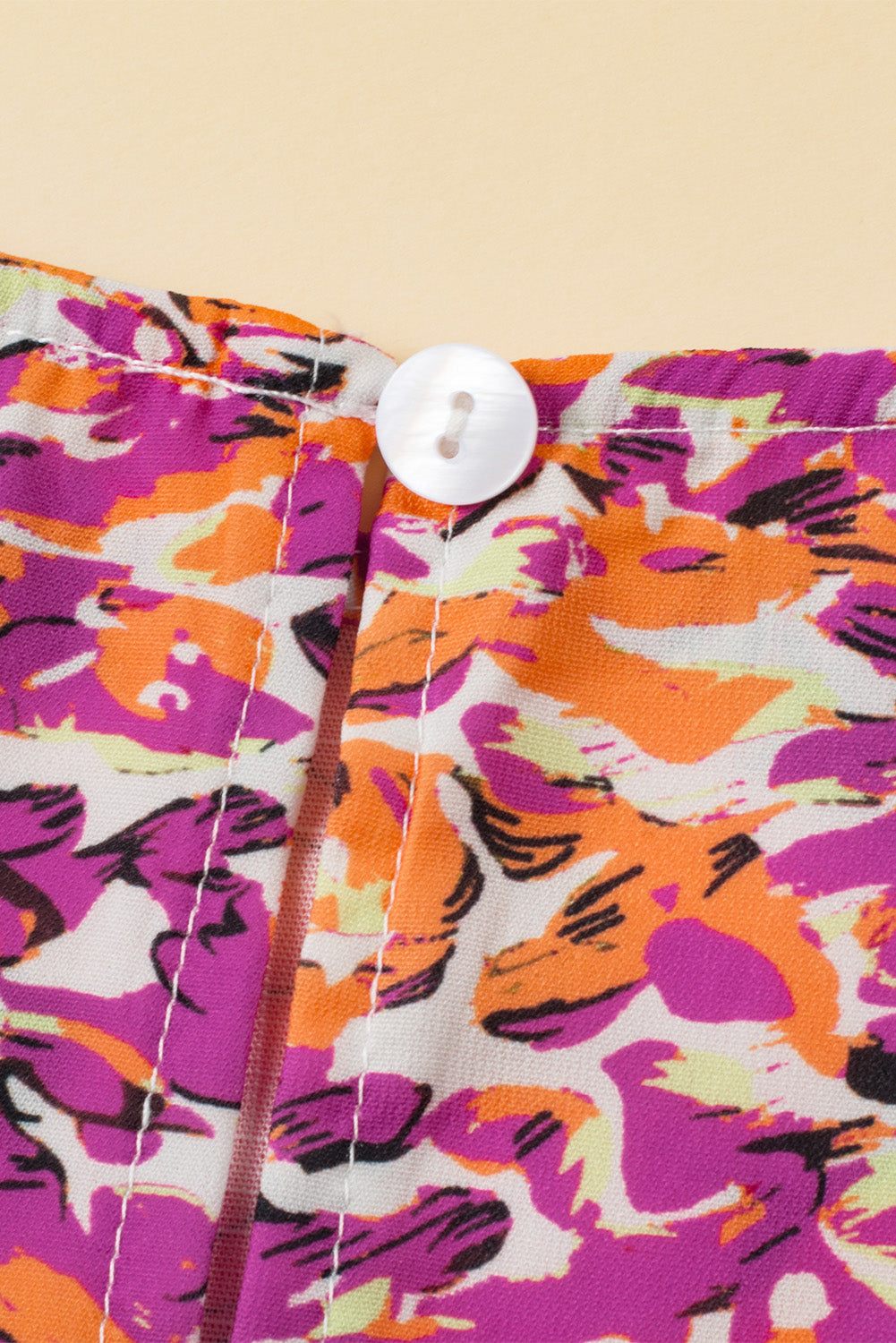Green Bubble Sleeve Lace Trim Floral Mixed Print Blouse