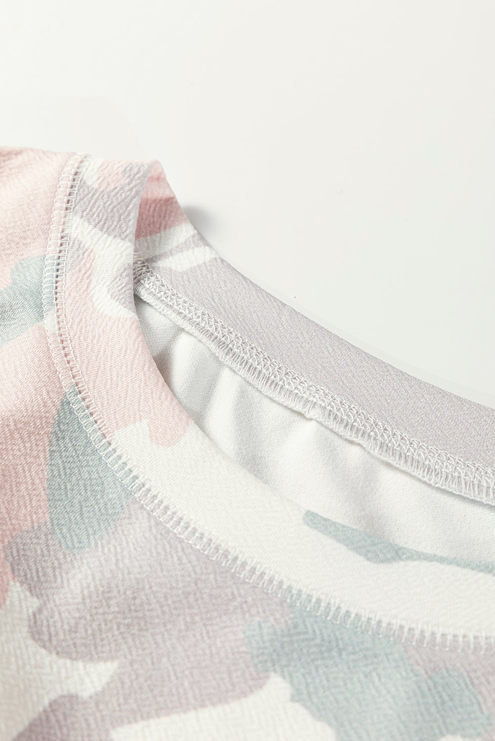 Green Plus Size Camouflage Print Drop Shoulder Loose Pullover Top