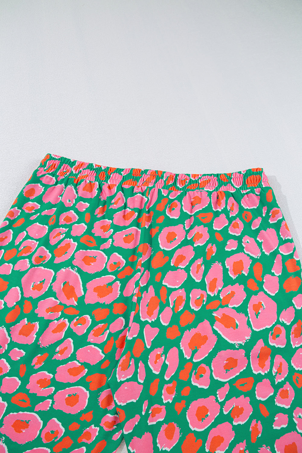 Green Plus Size Printed Long Sleeve and Pants Lounge Set