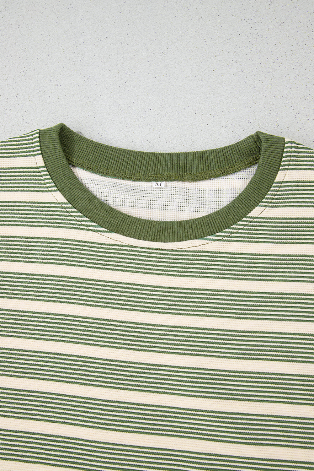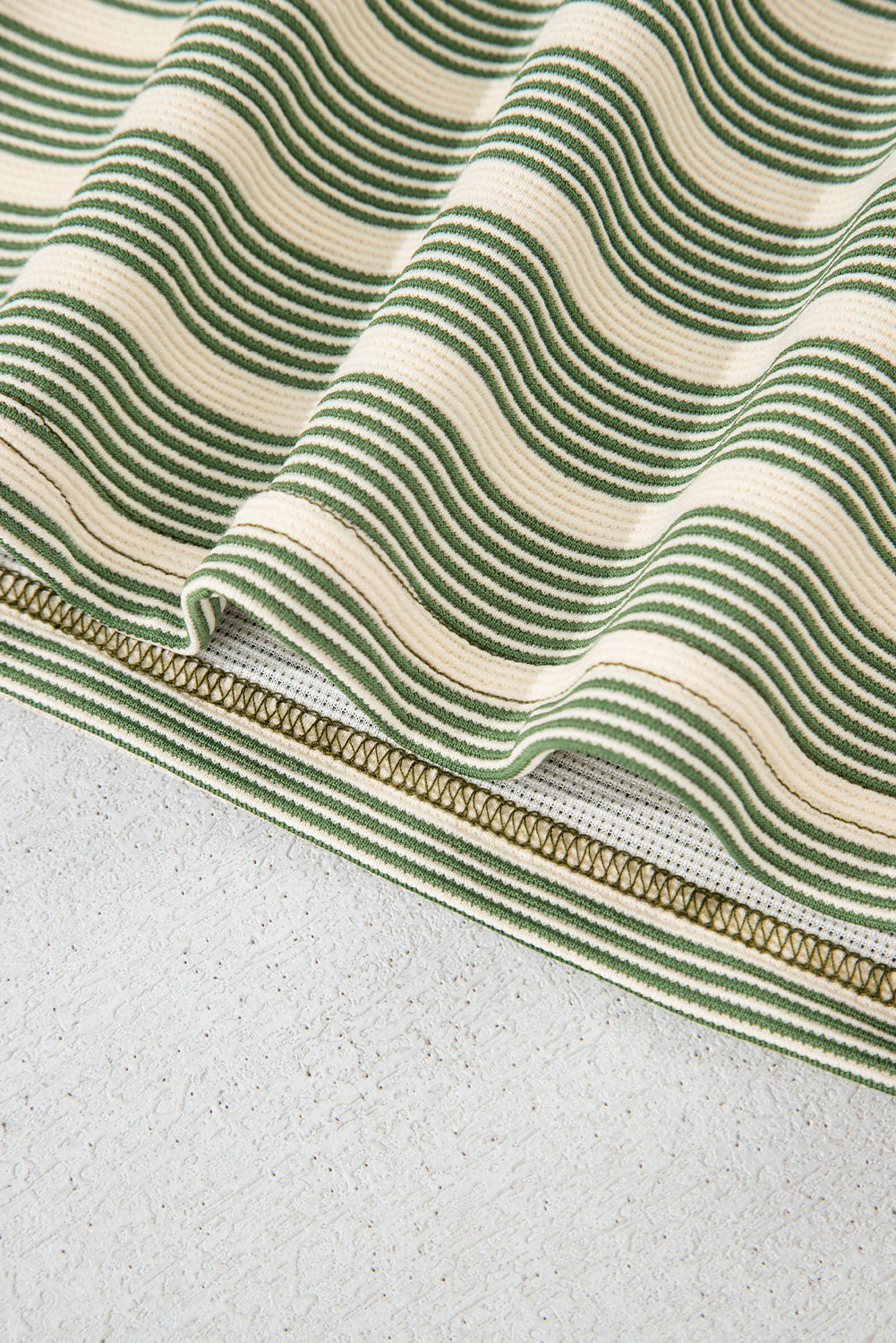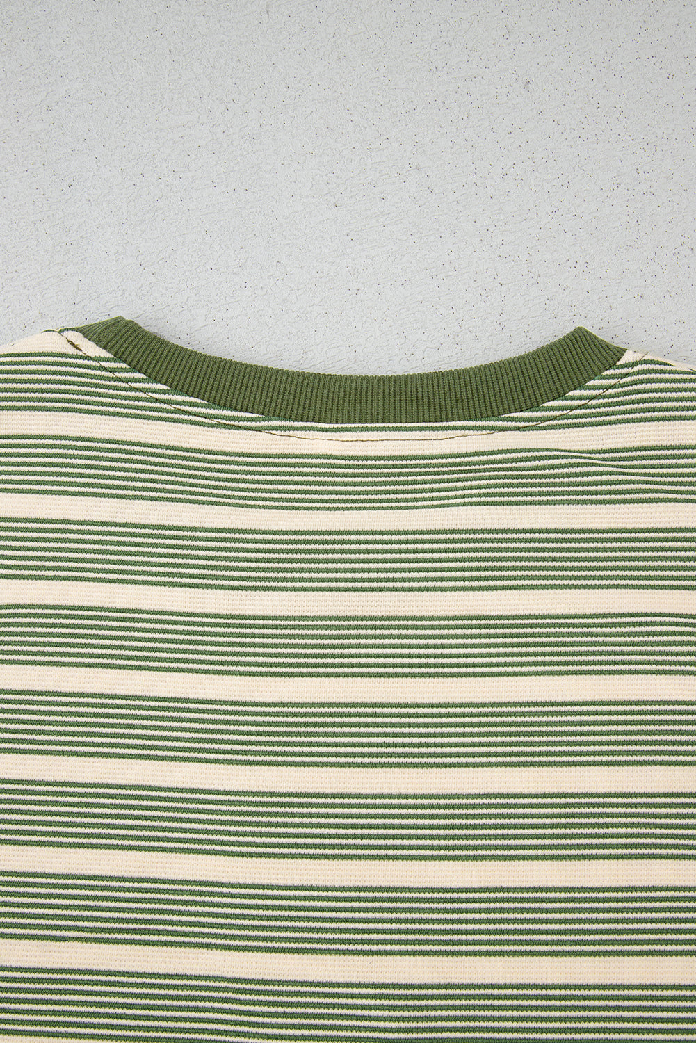 Green Stripe Contrast Edge Short Batwing Sleeve T Shirt