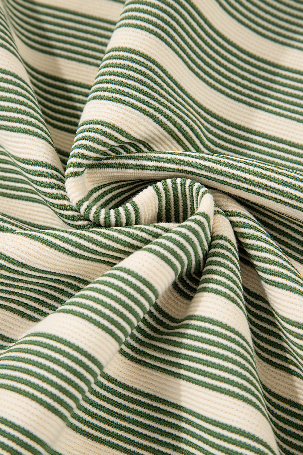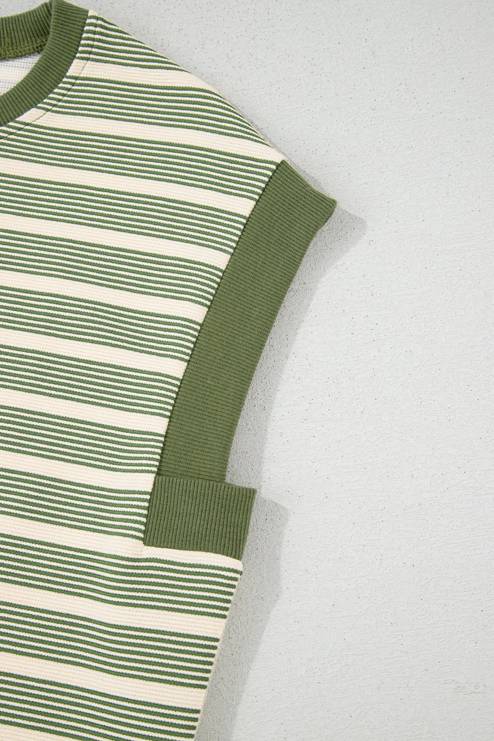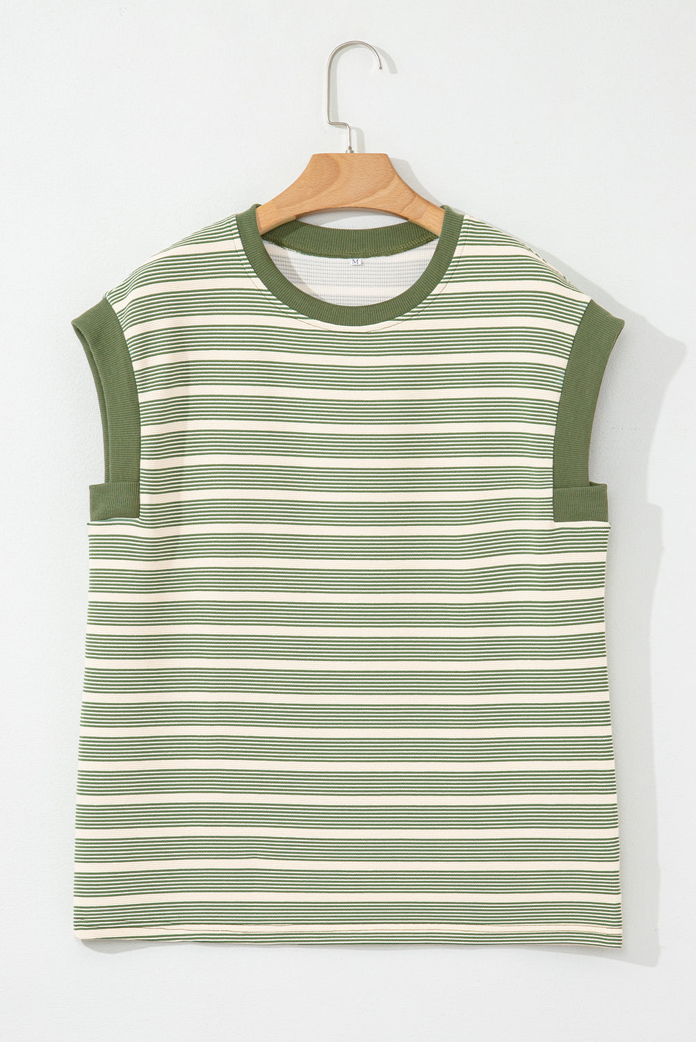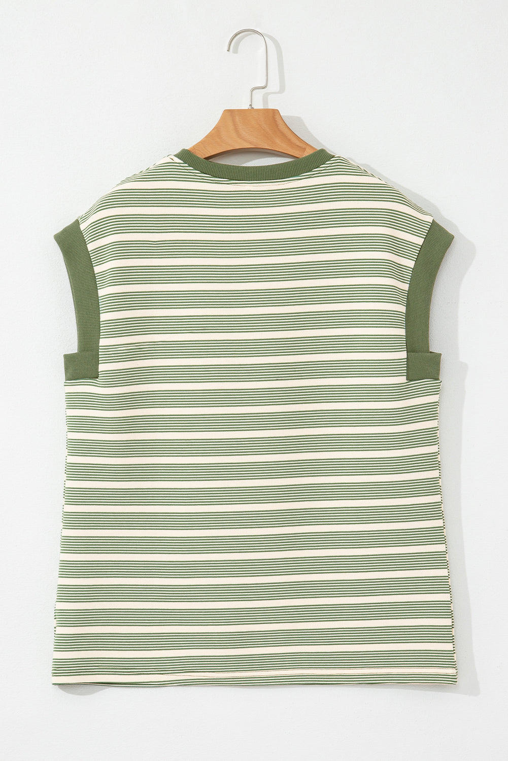 Green Stripe Contrast Edge Short Batwing Sleeve T Shirt