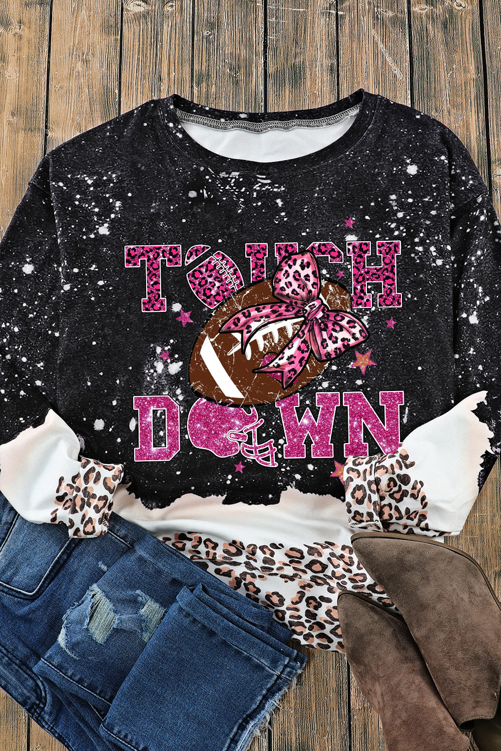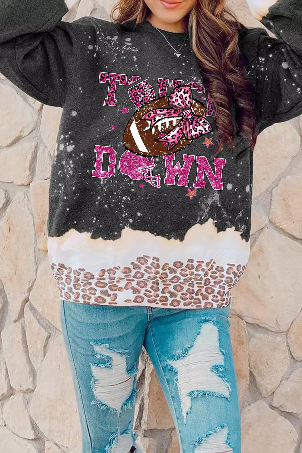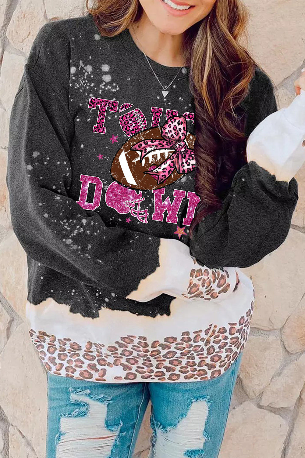 - A splattered sweatshirt with leopard digital printed on the hem and sleeve cuffs