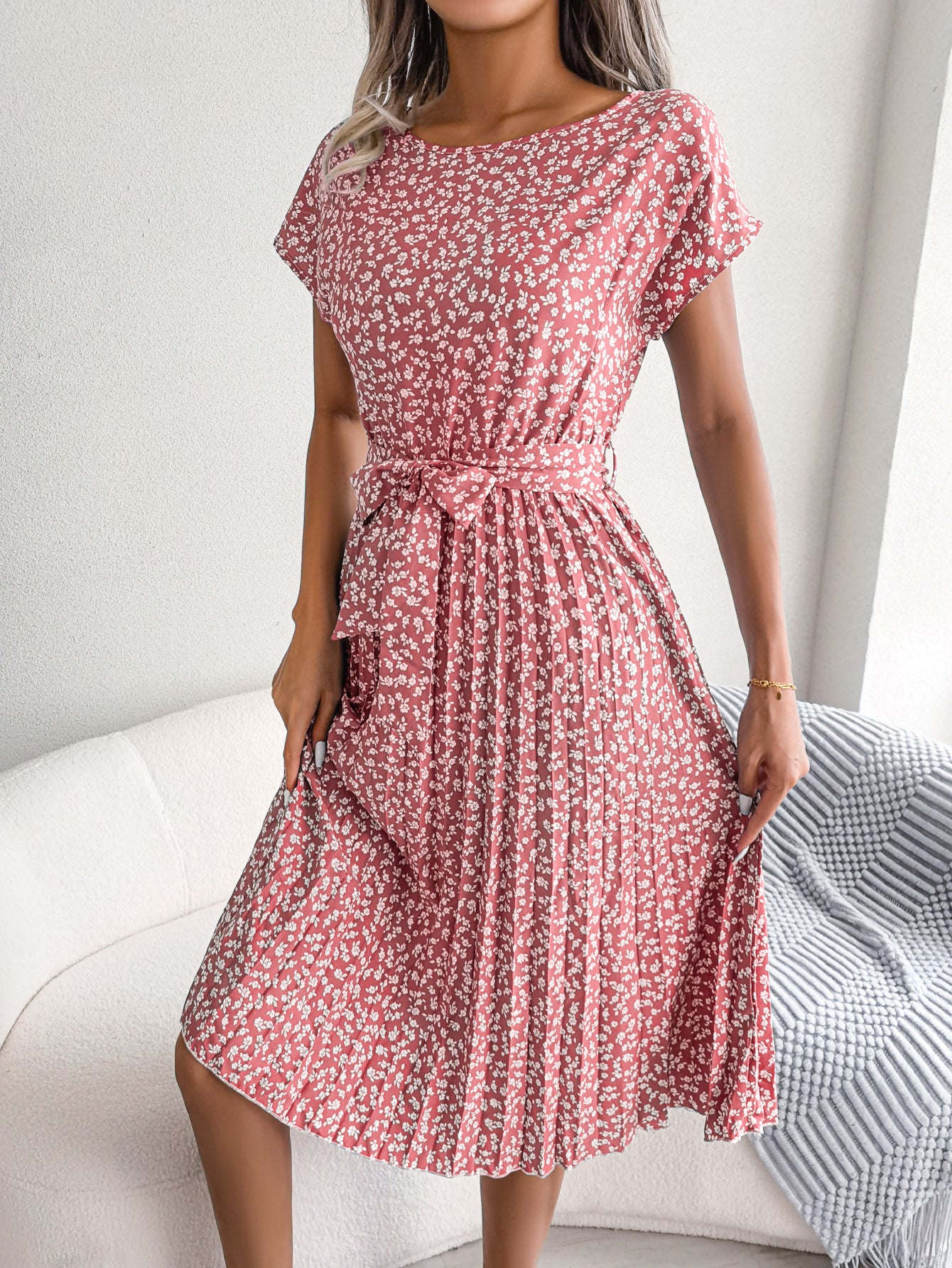 - Women Flowy Swing Dress-Material: Women pleated ruffle a line dress belted chiffon midi dress, made of high quality polyester fabric, very soft and skin-friendly, bring you comfortable wearing experience. Women midi dress loose short sleeve swing dress, formal summer dresses for women floral print dress, wedding guest dress for women tea party outfit, great for beach vacation wear, very elegant for you.